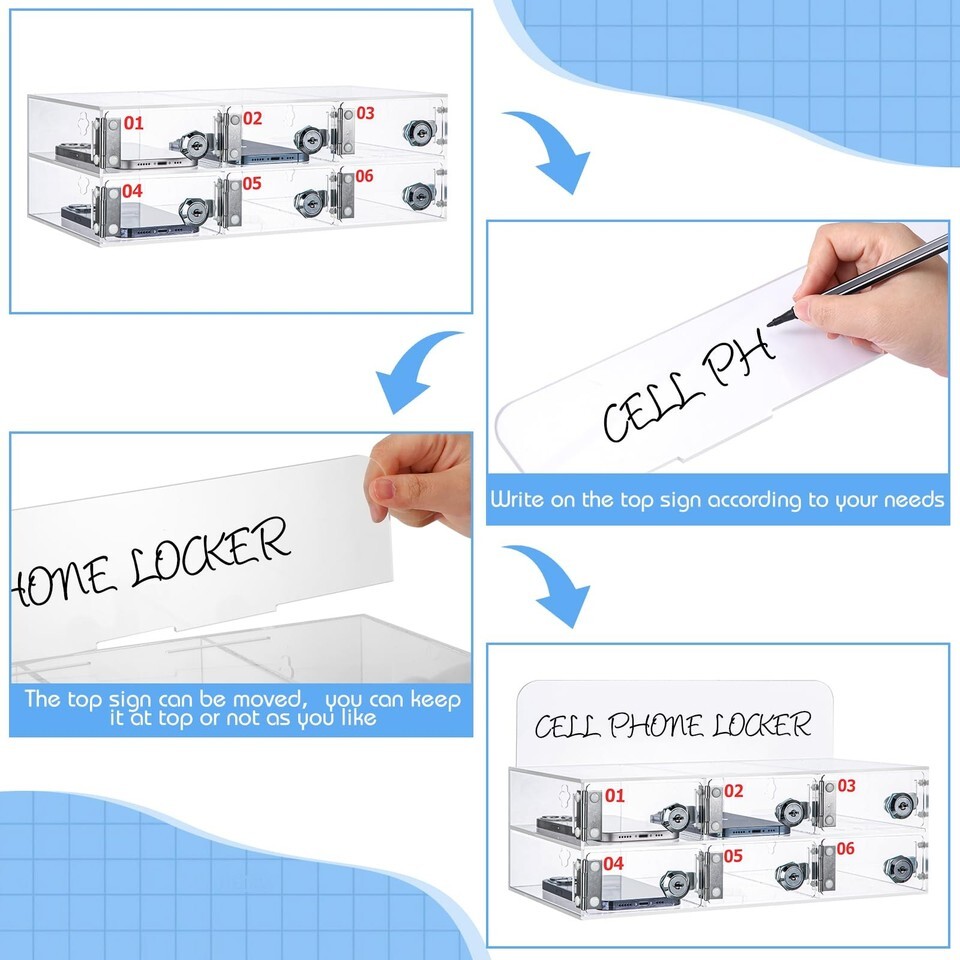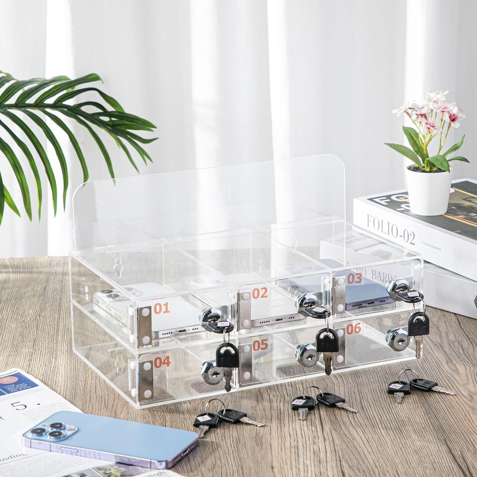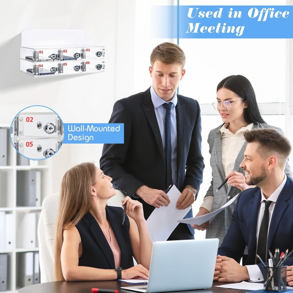 Threan 6-Slot Clear Acrylic Cell Phone Storage Box Wall Mount w/ Door Locks Key