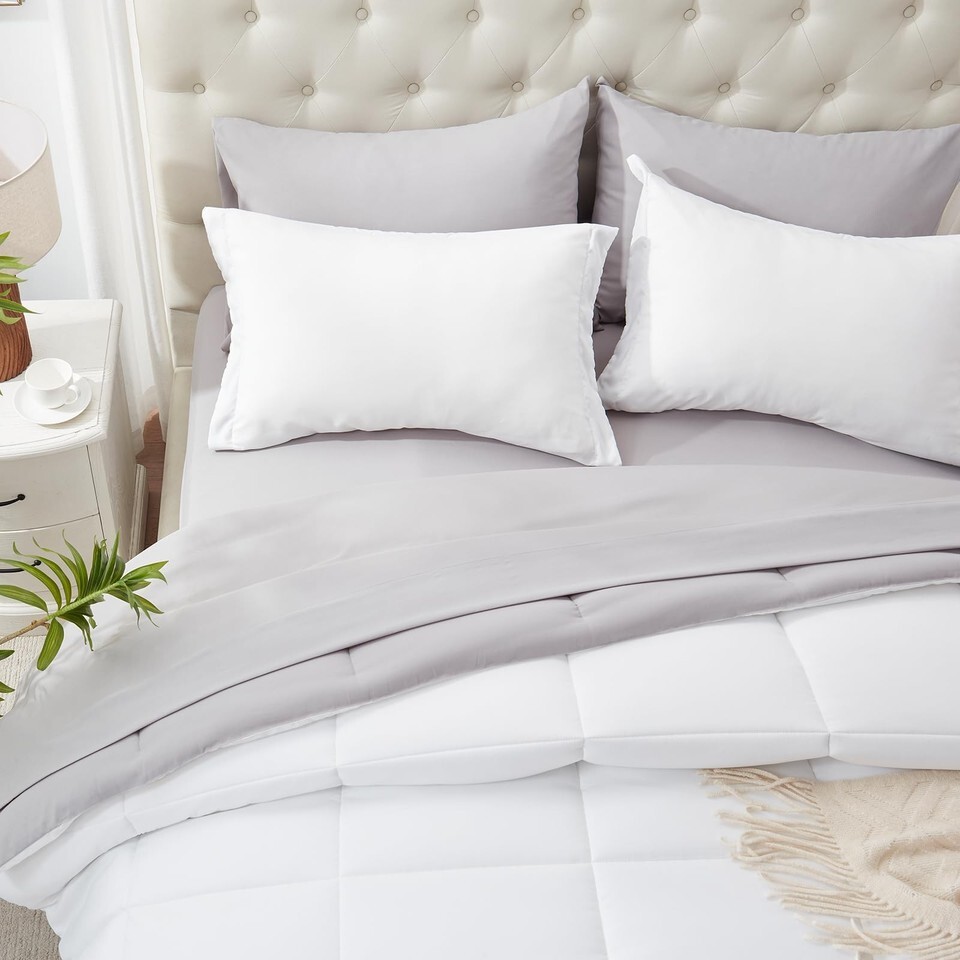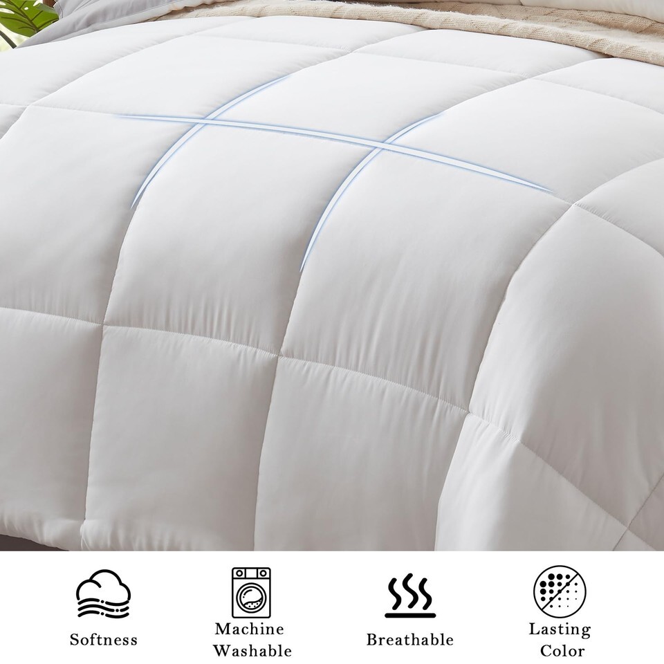 Anluoer King Size 7-Piece White Comforter Set with Sheets, All-Season