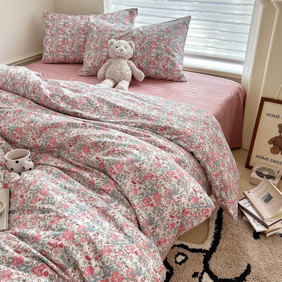 HighBuy Queen Pink Floral Rabbit Comforter Set Soft Bedding
