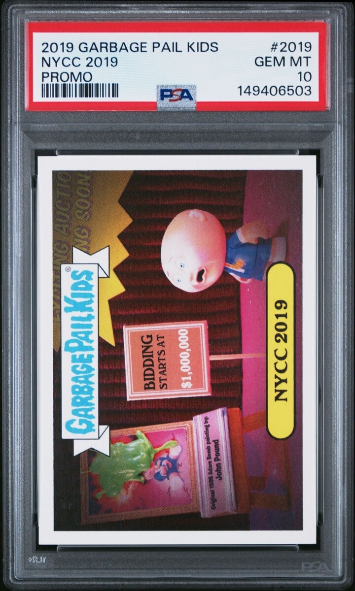 This is a 2019 TOPPS NY COMIC CON GARBAGE PAIL KIDS NYCC 2019 PROMO CARD. Itis Graded PSA 10 GEM MINT VERY RARE EXCLUSIVE CARD only available at the Topps Booth at the 2019 Con. It is a normal sized 2 1/2 inch by 3 1/2 inch card. This is a card does not have a sticker. This promo is a regular Card. Certification #149406503 Very Low Pop one of ONLY 2 Graded a 10. Combine auctions to save on shipping. Please contact me if you need to make other payment arrangements. AG