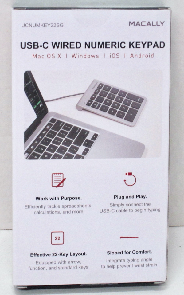 New/Sealed Macally Numeric USB-C Keypad 22-Key Number Pad, Mac, iPad, PC