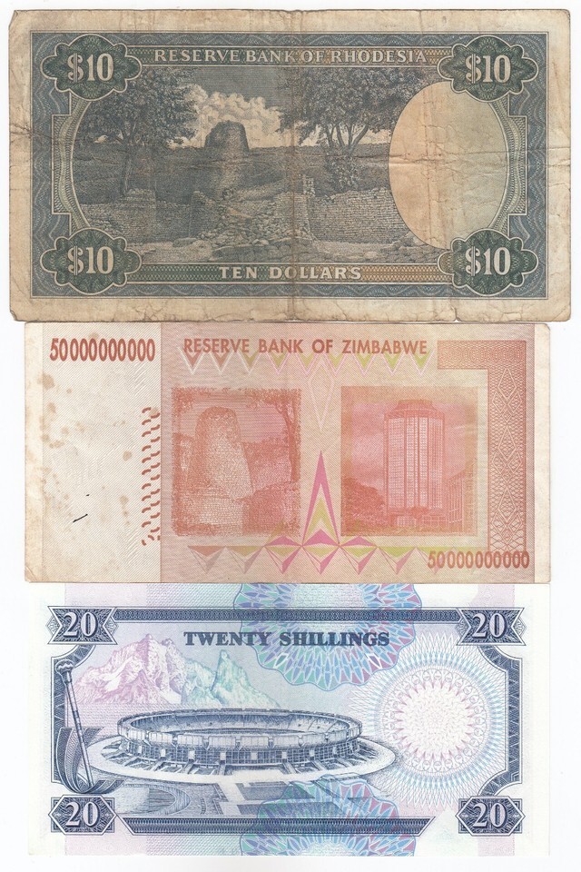 Rhodesia, Zimbabwe, Kenya, Lot of 3 Different Banknotes, Old Issues