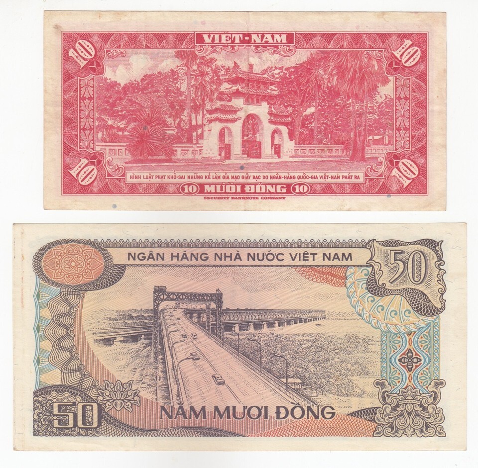 South Vietnam, Vietnam, (Set of 2) 10, 50 Dong, Old Issue, Rare Collection