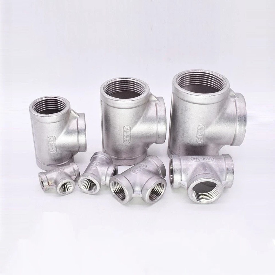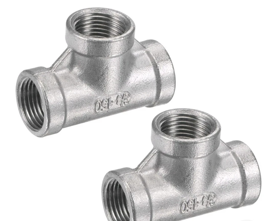 5 Pcs, 3/8" 150 Female NPT Tee Cast 304 Stainless Steel Pipe Fitting