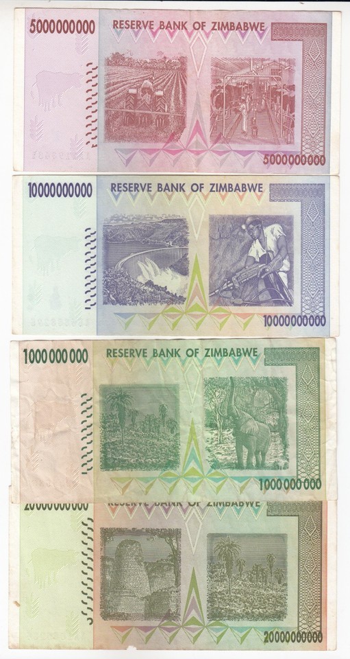 Zimbabwe, Lot of 4, All Different Denomination Banknotes,