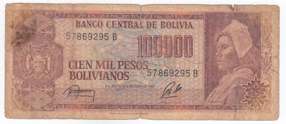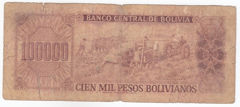 786 Sainte ° En Entre Série No. Bolivia, 100000 Bolivanos, Used- show origina...