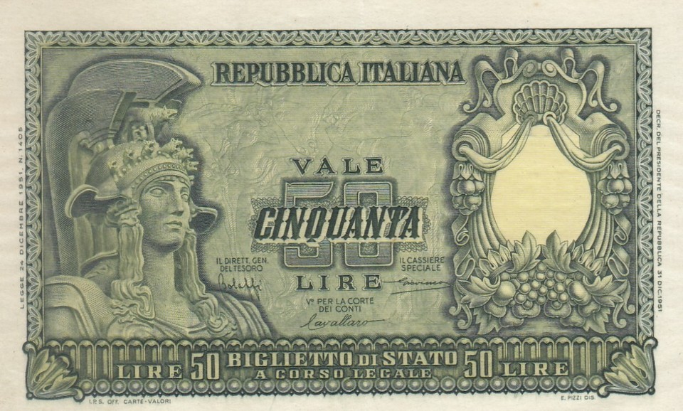 Italy, 50 Lire, 1951 Issue, Italia - and similar items