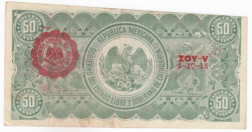 Chihuahua, Mexican Currency State, 50 Centavos, 1914, XF- show original title...