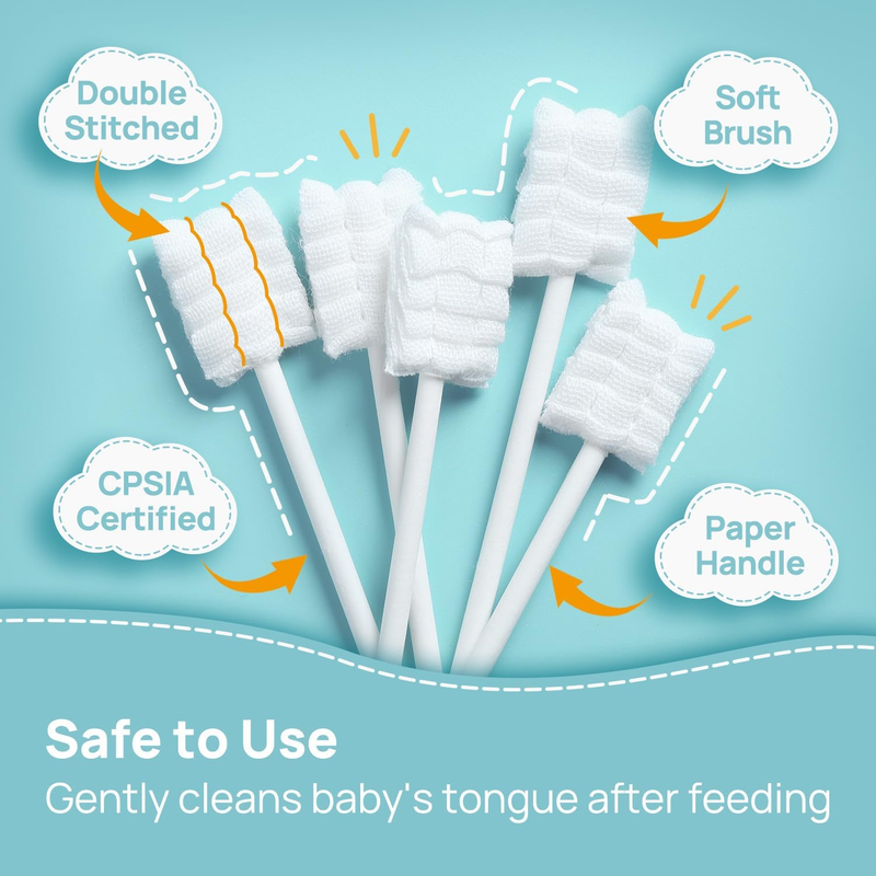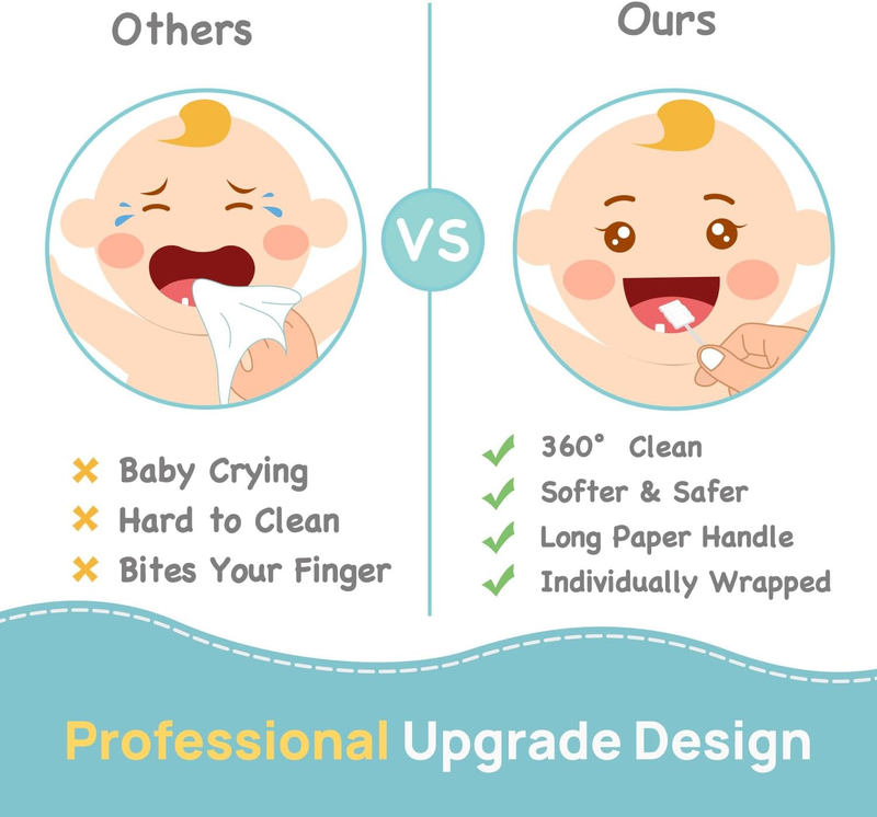 ?Upgrade Design?: Unlike gum wipes or finger toothbrushes, these new swab-style disposable infant brushes can easily reach every part of your baby?s mouth with a flexible paper handle. Ultra-soft and all-round brush heads make cleaning a breeze and efficient.