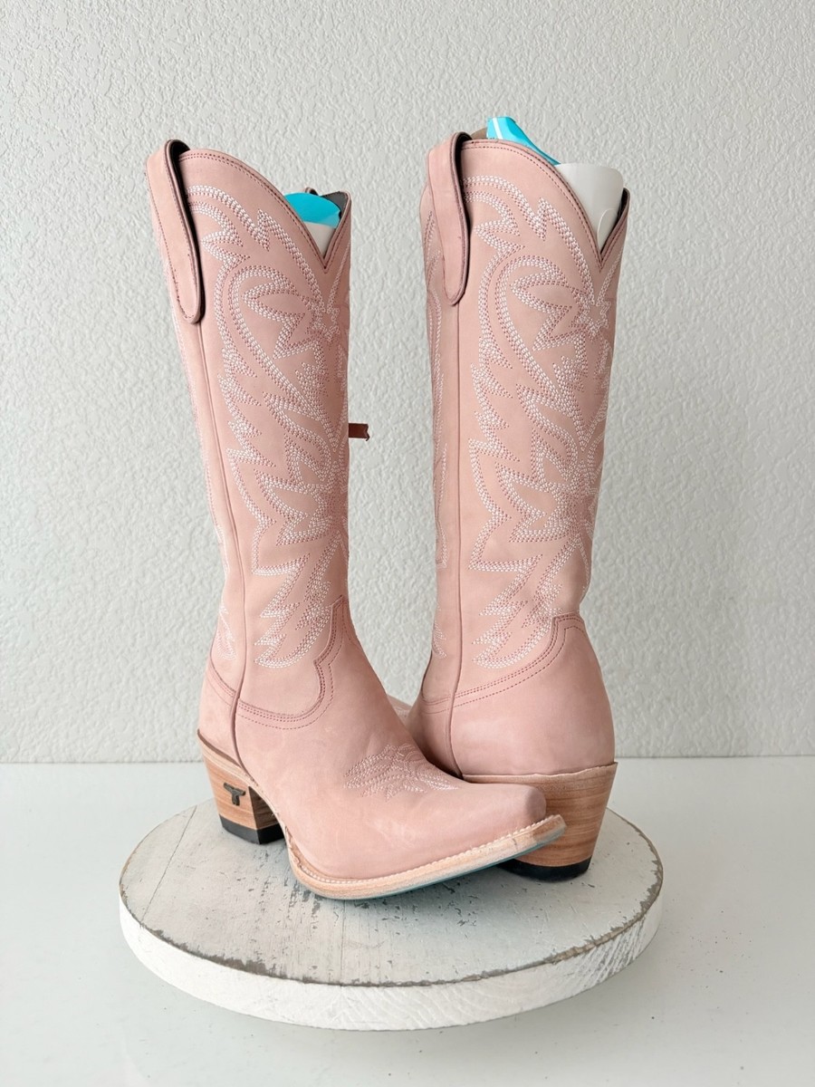 Lane Boots SMOKESHOW Womens Cowboy Boots in Blush Pink Leather with a Western Pointed Snip Toe and 15" tall Mid Calf Shaft