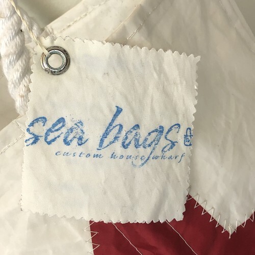 Sea Bags Maine Medium White Sail Cloth Tote Bag Red Star Rope Double Handle