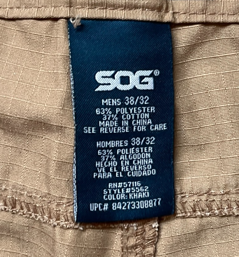 SOG Men's Tactical Cargo Pants Size 38x32 Khaki Pockets Comfort