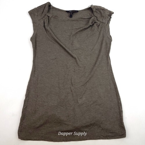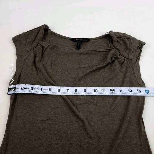 BCBG MAXAZRIA Small Scoop Neck Shirt Zipper Shoulders Brown