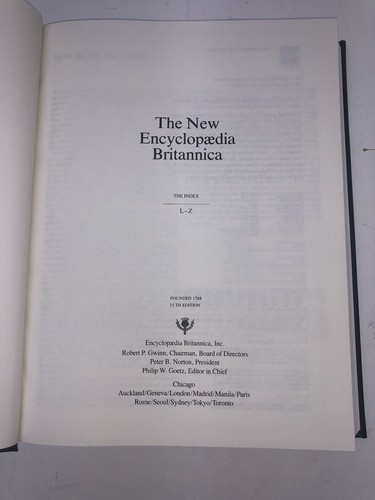 The 1991 Encyclopedia Britannica Propedia Outline of Knowledge Index A-Z Leather Hardcover is a collector's edition reference book published by Encyclopaedia Britannica, Inc. This English language encyclopedia covers a wide range of topics and features illustrations, making it a valuable resource for North American readers. The hardcover binding adds to its durability and enhances its appeal as a classic piece of information for those seeking comprehensive knowledge and reference materials.