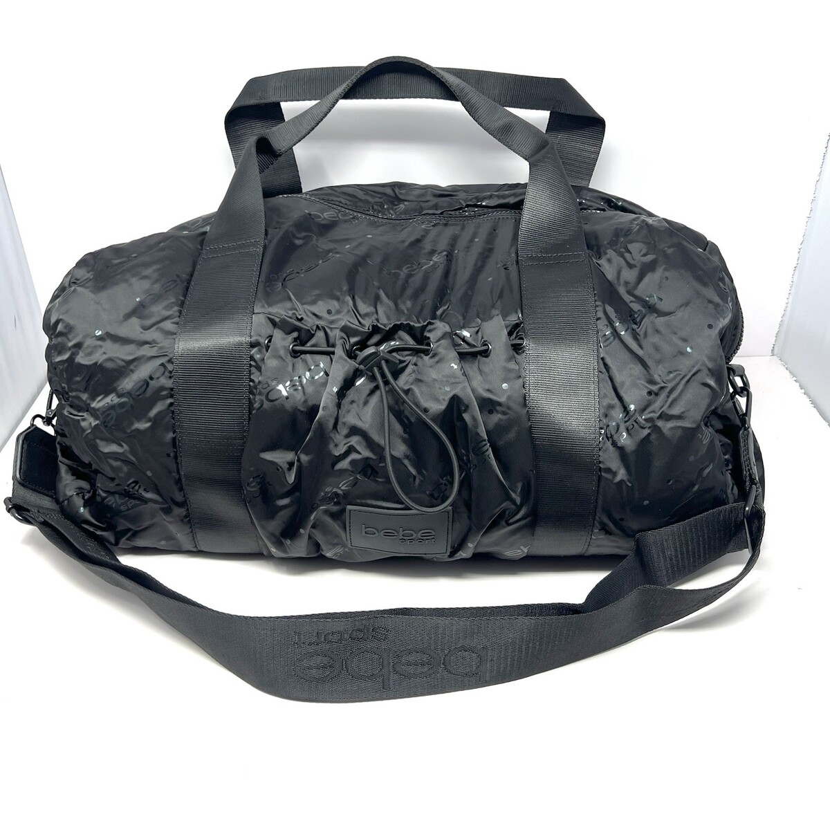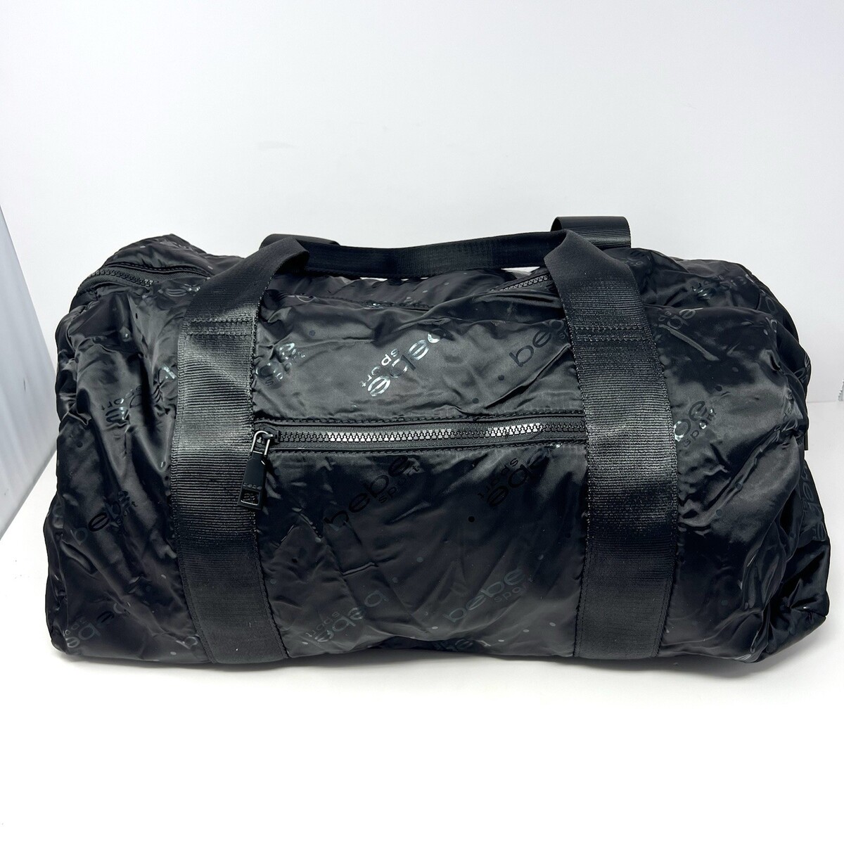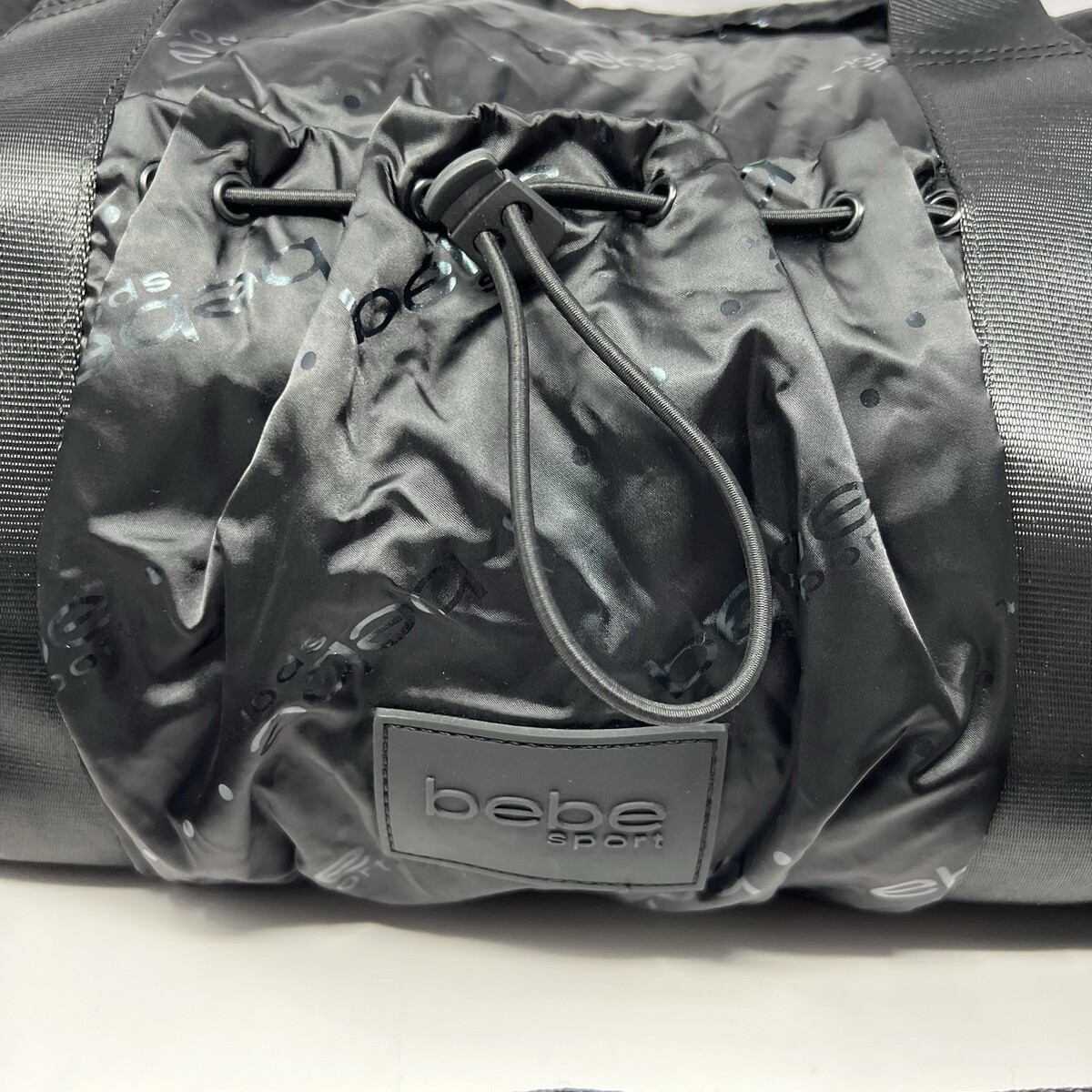 Bebe Sport Women’s Duffle Bag Weekender Black A.O.P. Travel Gym Workout Bag EUC