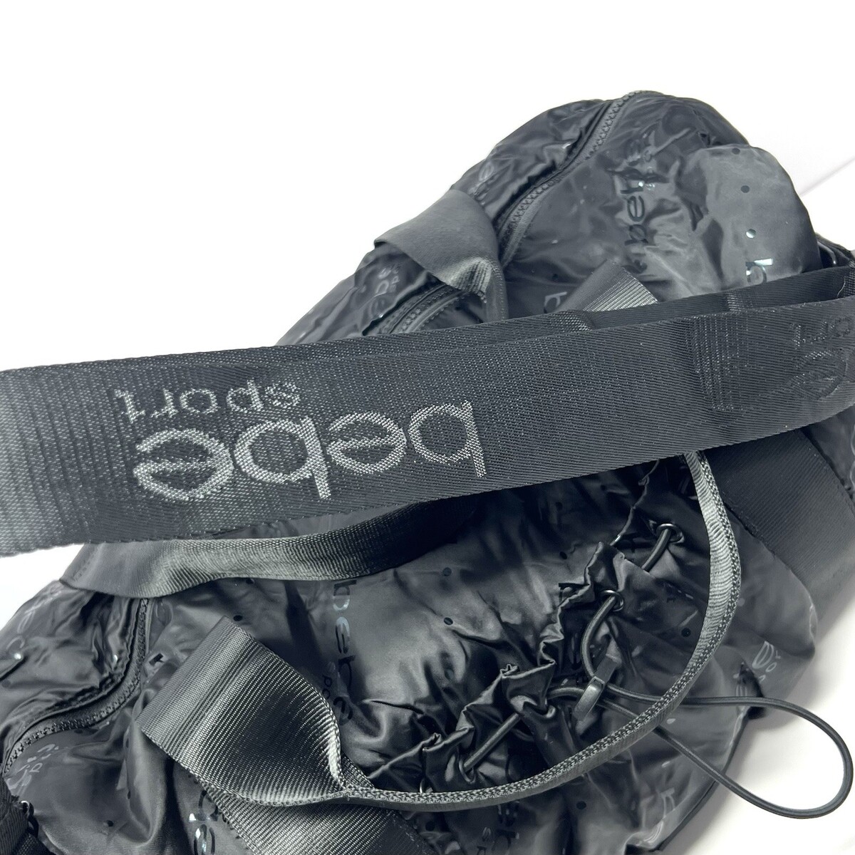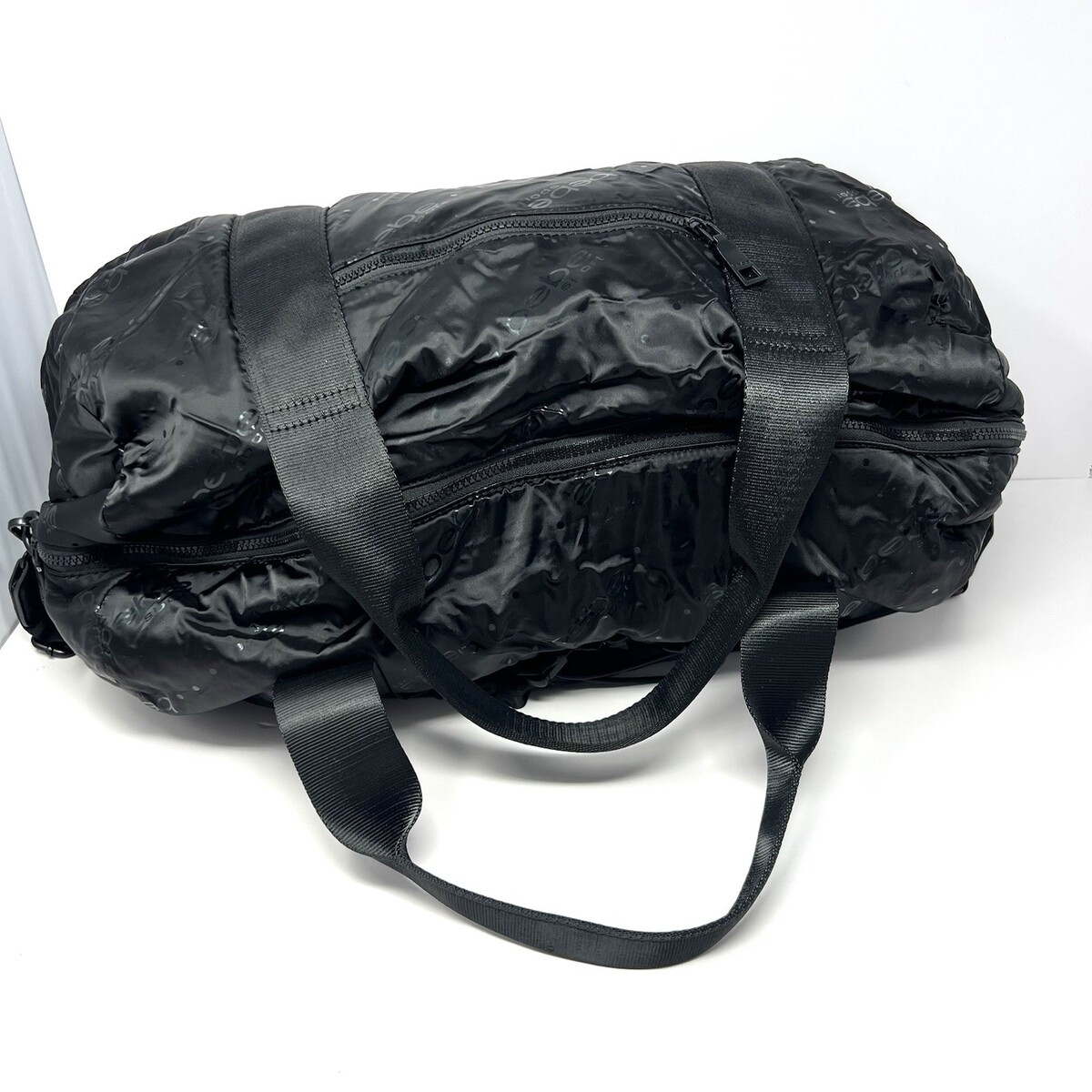 Bebe Sport Women?s Duffle Bag Weekender Black A.O.P. Travel Gym Workout Bag EUC