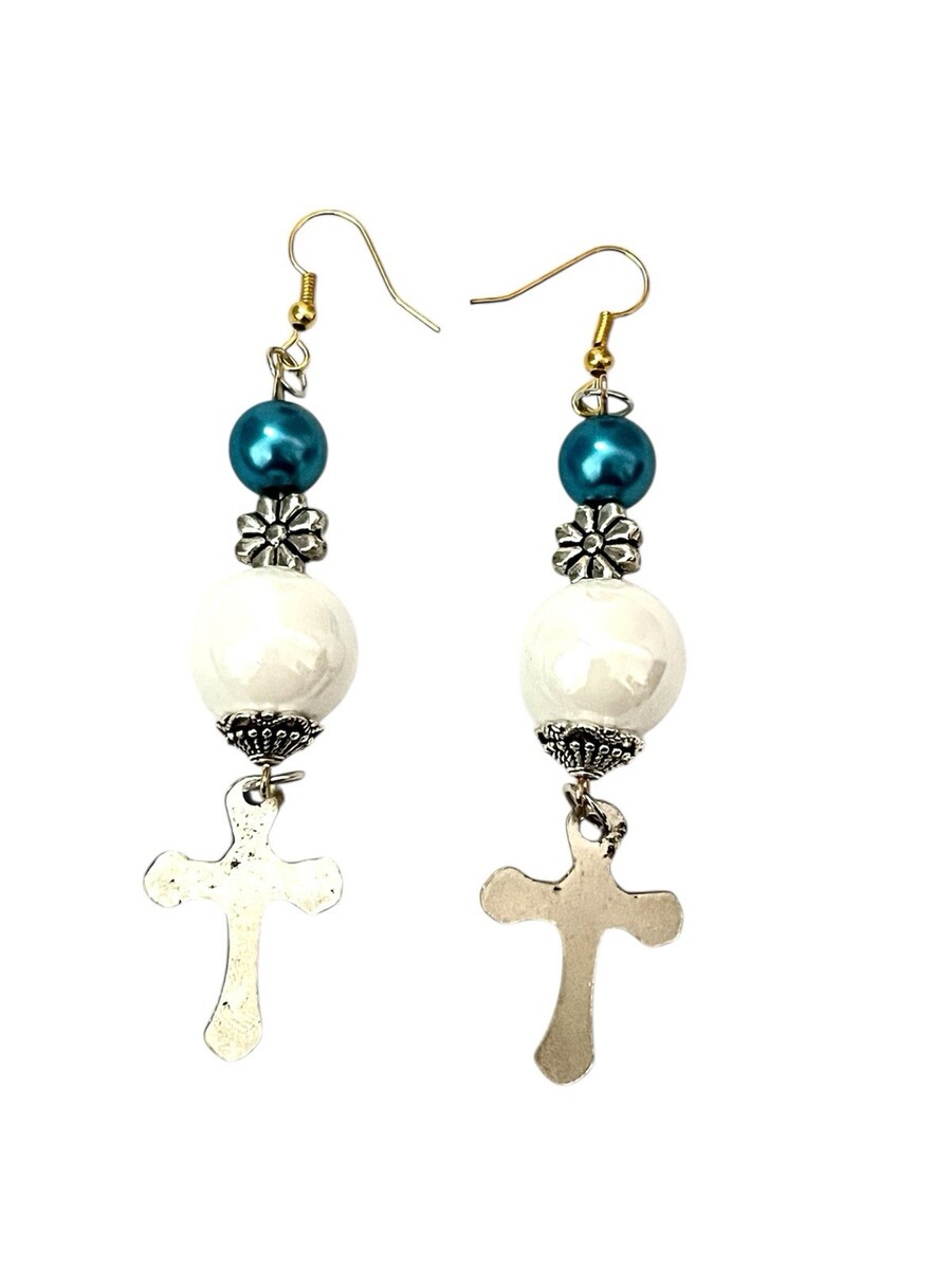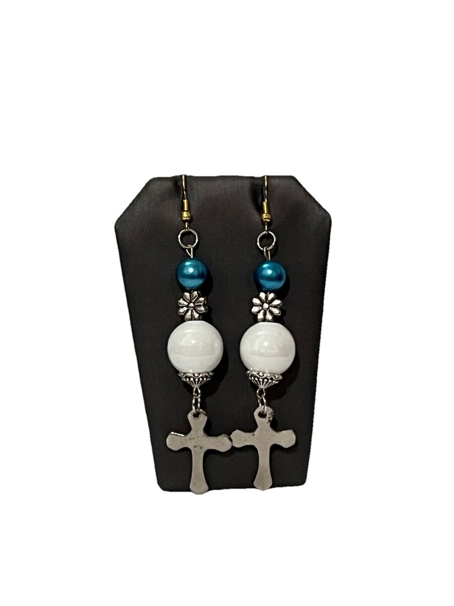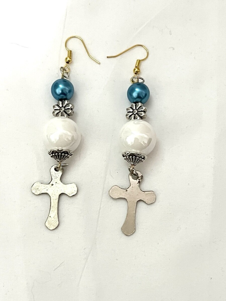 Religious Cross Dangle Earrings, Statement Jewelry, Bohemian Style, Gift Idea