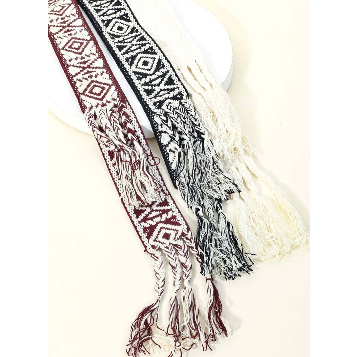 Boho Pattern Embroidered Braided Belt Burgundy