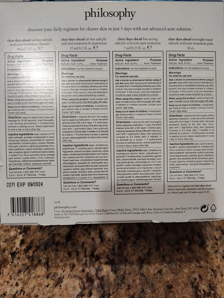 new Philosophy Clean, Calm & Clear Acne Treatment Set Acne Treatment Trial Set 4