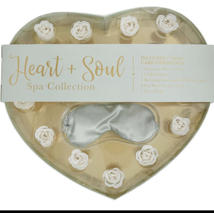 17 Piece Spa Collection Heart & Soul Diffuser Oil, Soap Glass And Eye Mask New