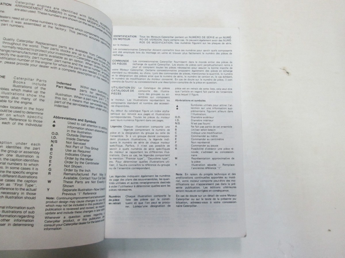 Manuale Parti Motore Veicolare Caterpillar D353 97U1-UP Macchie OEM FABBRICA