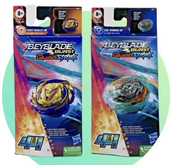 2x BEYBLADE BURST Zeal Nyddhog N8 And Fierce Achilles A8 QUAD STRIKE TOP 4 in 1
