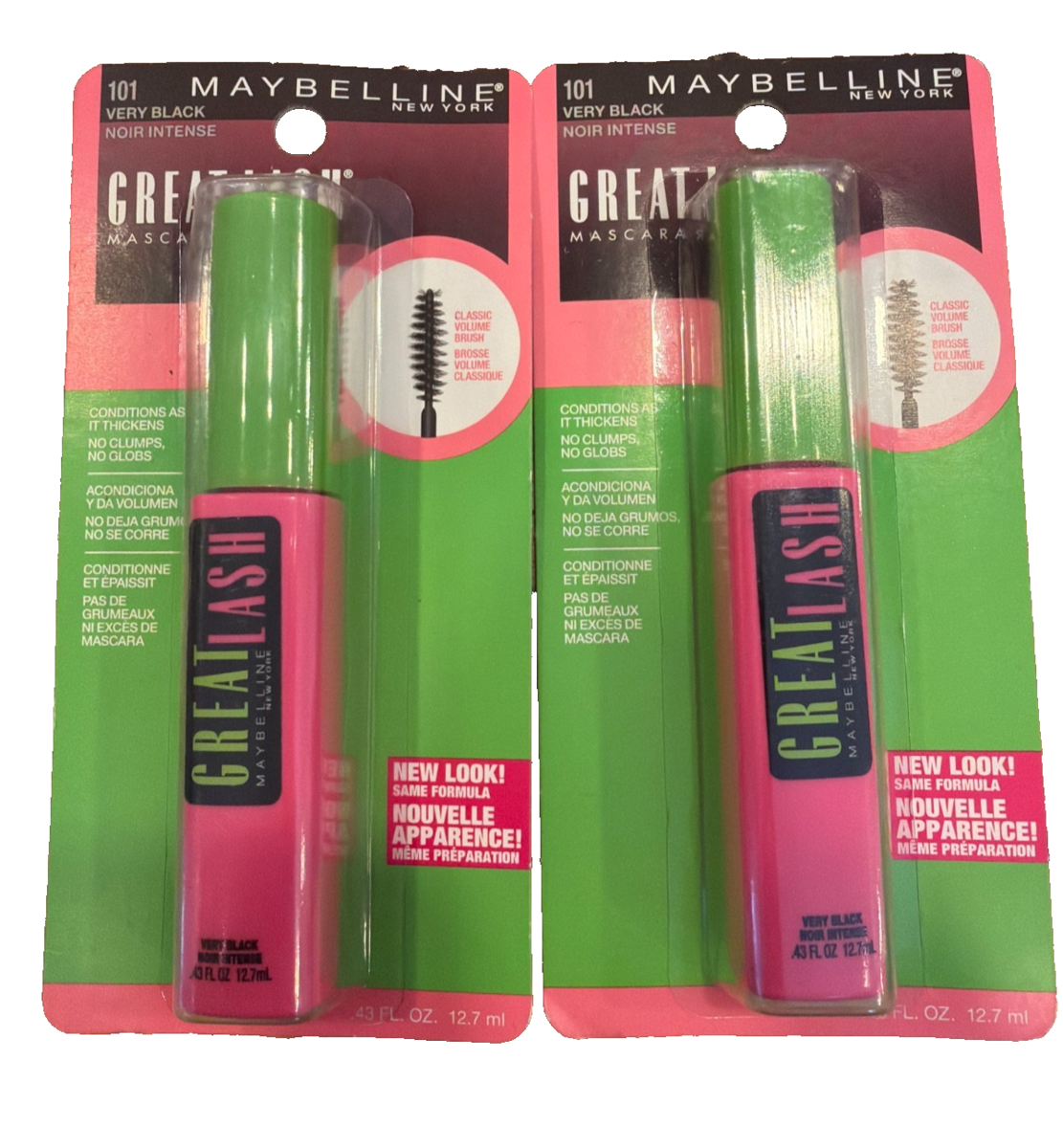 Maybelline Great Lash Mascara Classic Volume in 101 Very Black 0.43oz Set Of 2
