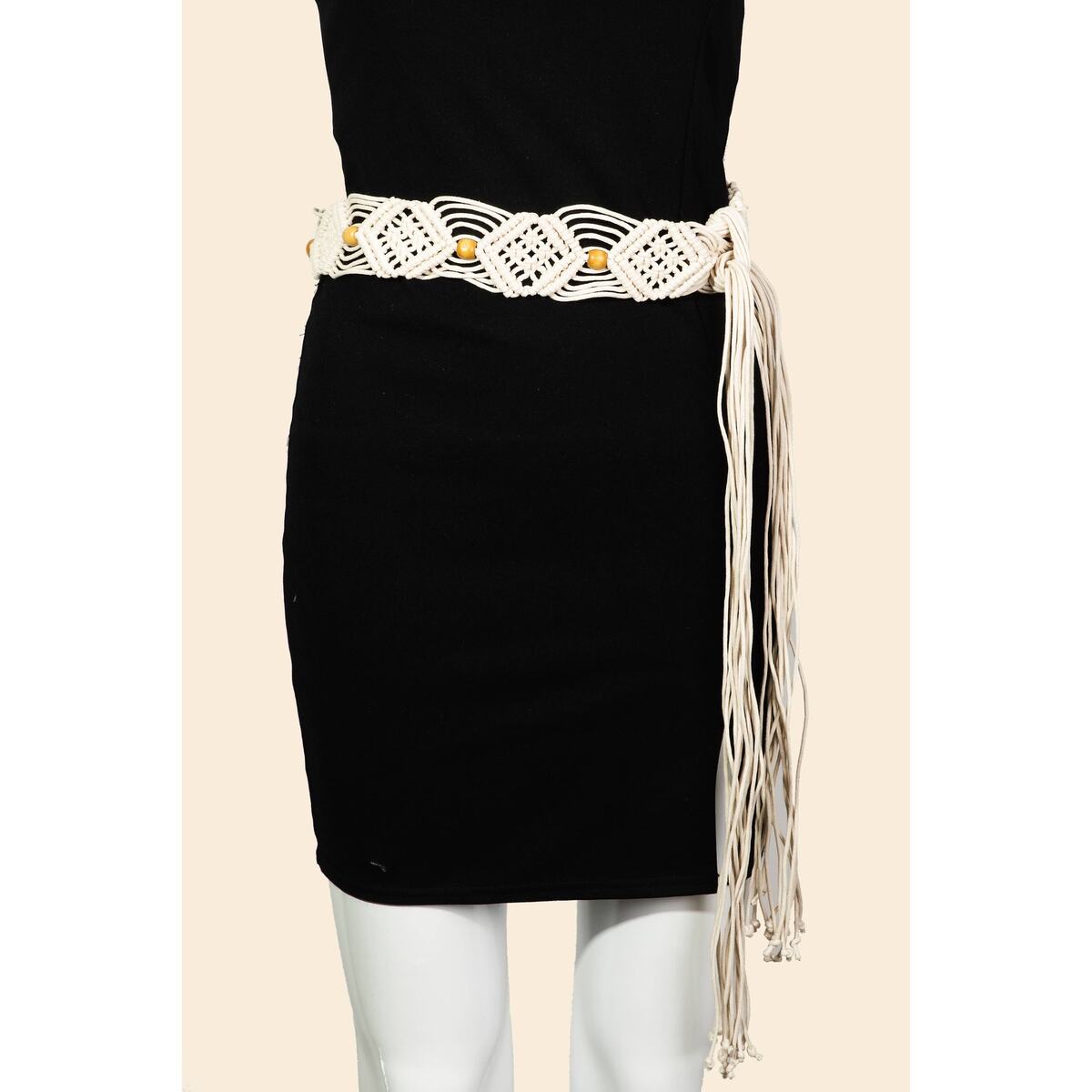 Boho Pattern Braided Belt Ivory