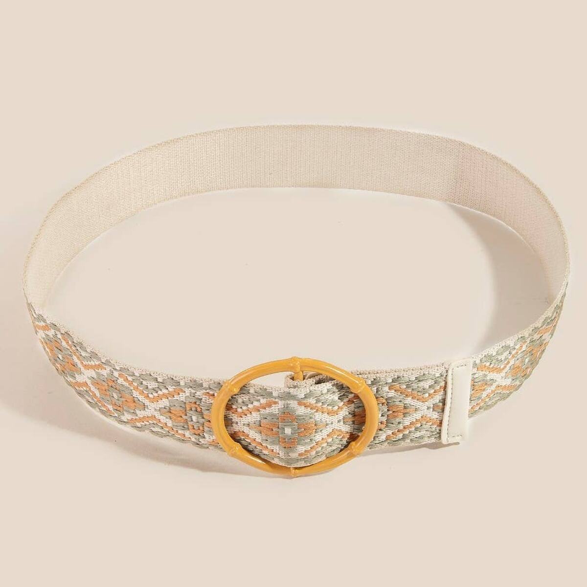 - Ivory colorway, faux bamboo buckle
