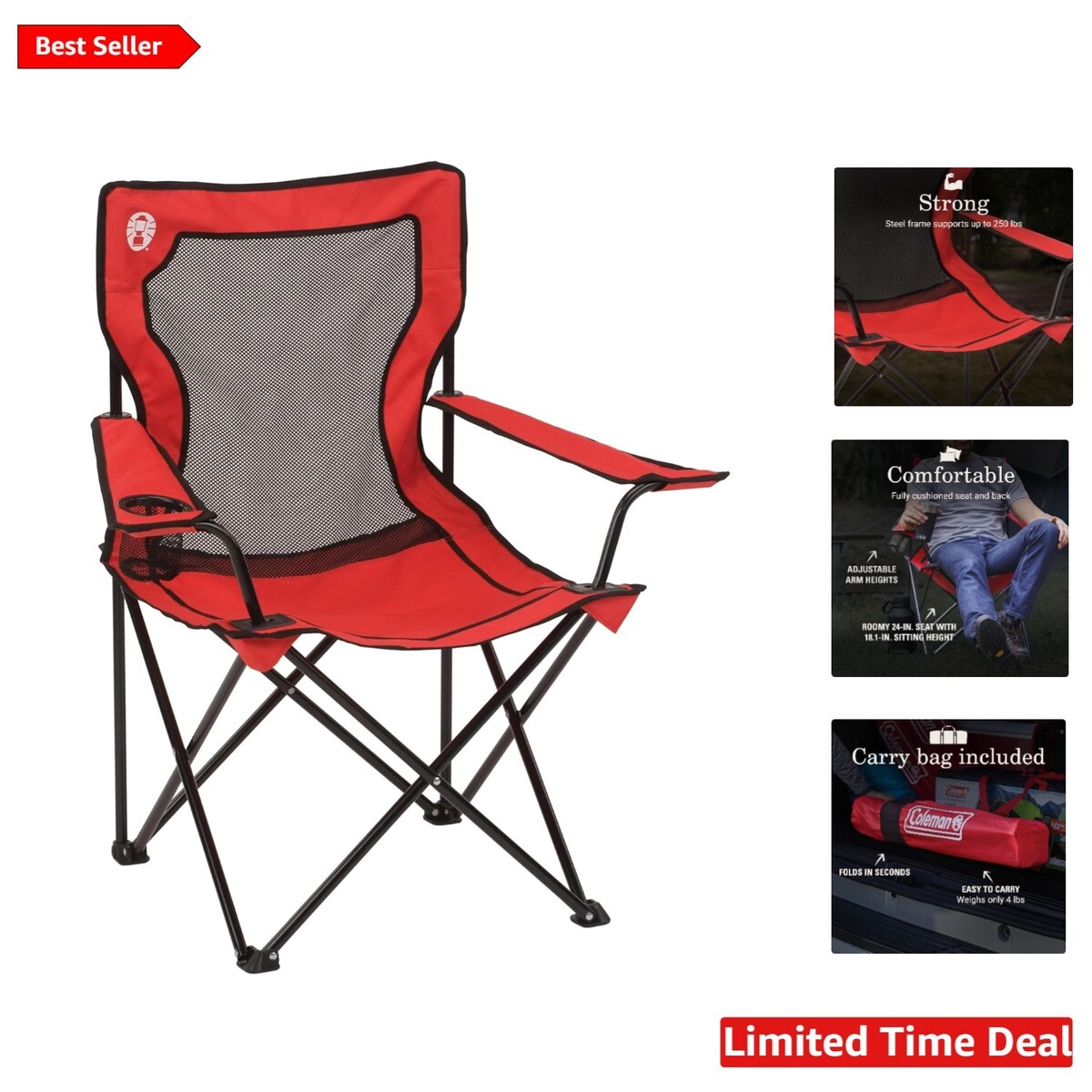 Broadband Quad Camping Chair Cool Mesh Back & Cup Holder 250 lbs Capacity