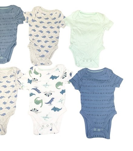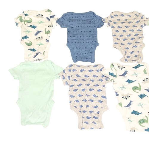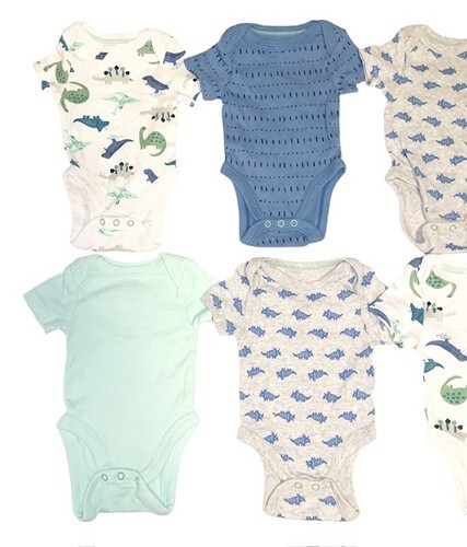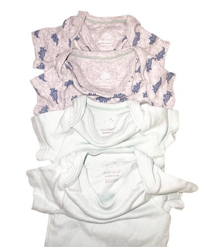 Adorable Cloud Island baby bodysuits in a coordinated dinosaur theme.