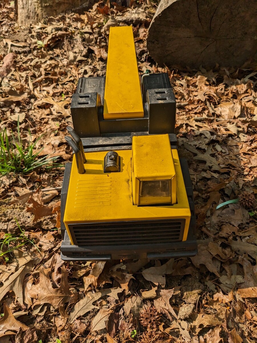 A vendre est une fleche hydraulique de depanneuse en acier presse Tonka Turbo Diesel vintage d'occasion XMB-975 en metal.