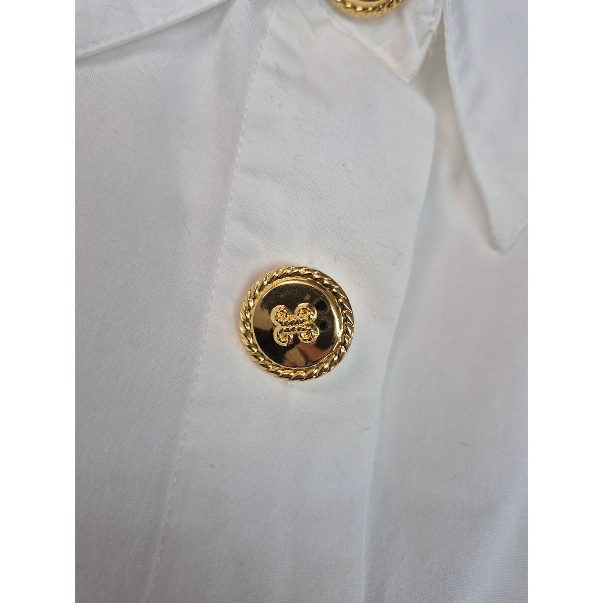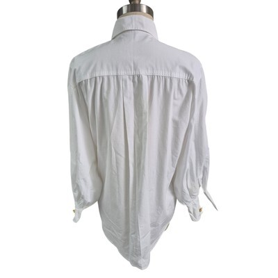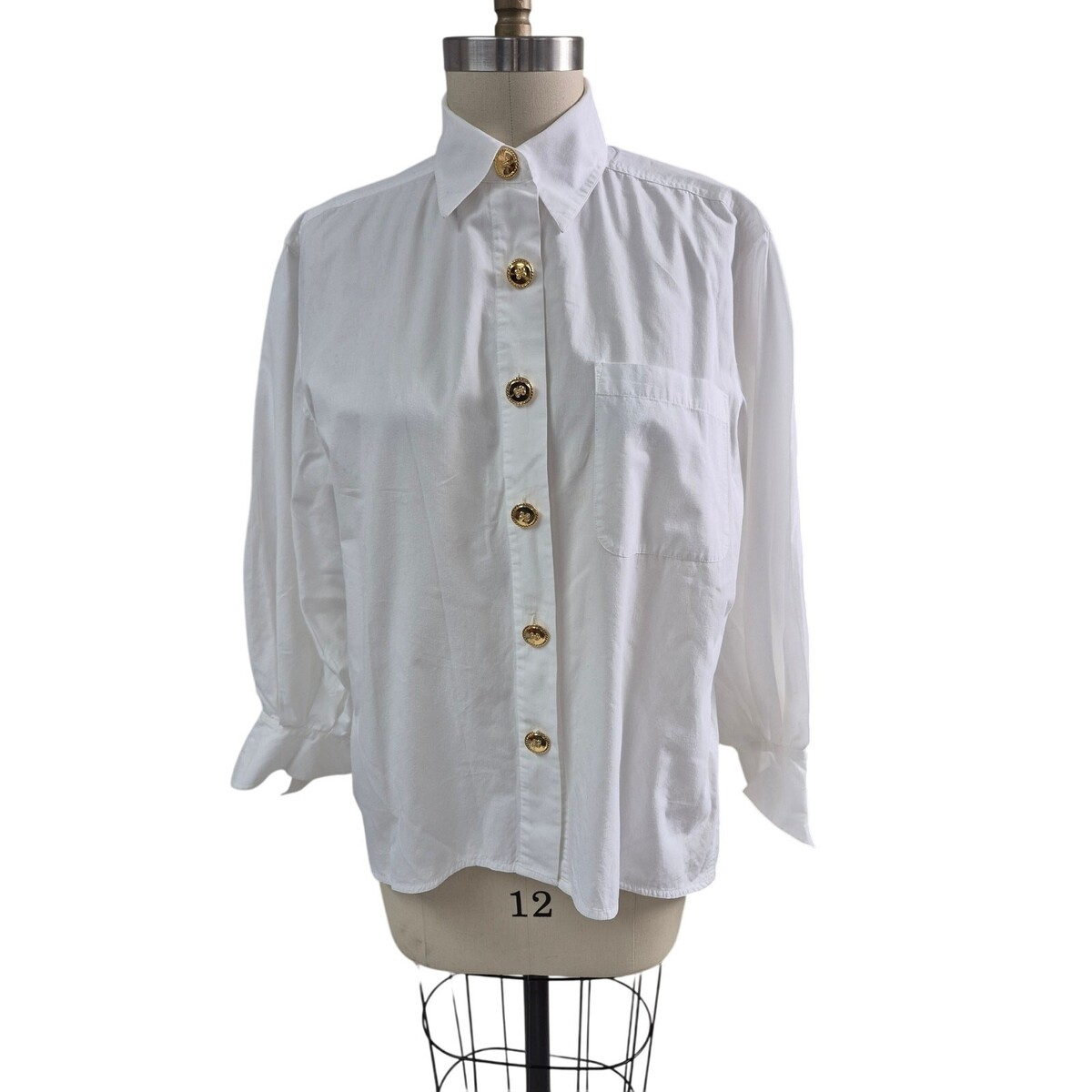vtg 80s 90s NY Line White Button Up Shirt Gold Buttons Balloon Sleeve Women L/XL