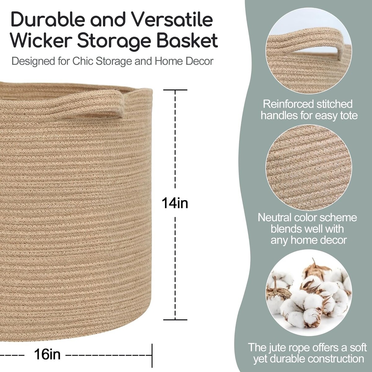 Versatile 16" Jute Woven Storage Basket with and 50 similar items