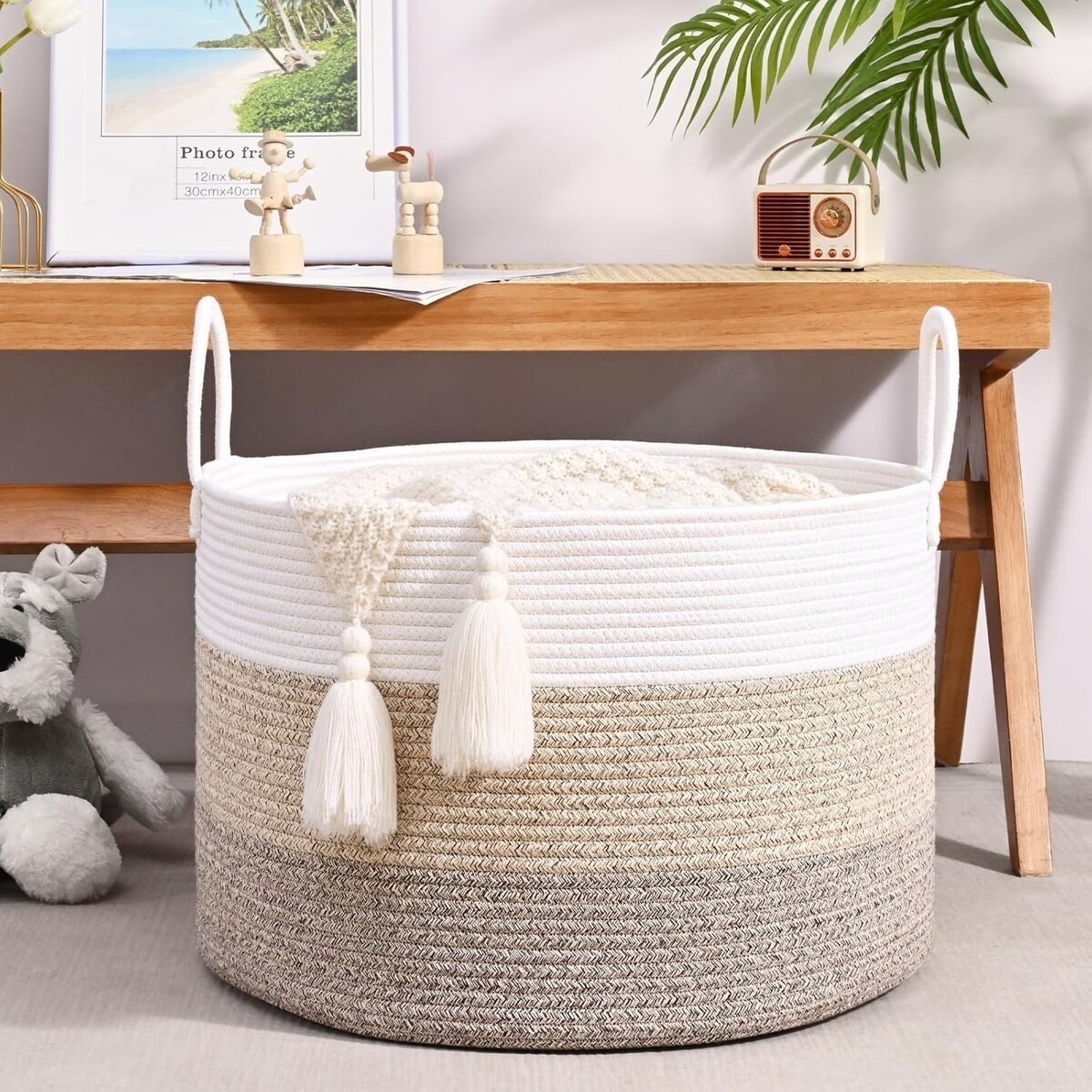 Versatile for various uses, including living room blanket storage, nursery hampers, classroom containers, or even dog toy storage.