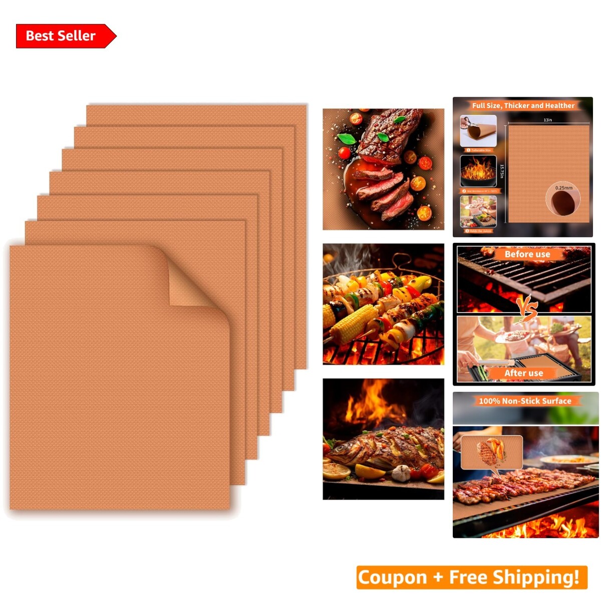 A Necessity for Outdoor Grill: The grill mat set includes seven 15.75 x 13 inch copper mats. These versatile mats can even be cut to any size or shape you need, making grilling not only easy but mess-free.