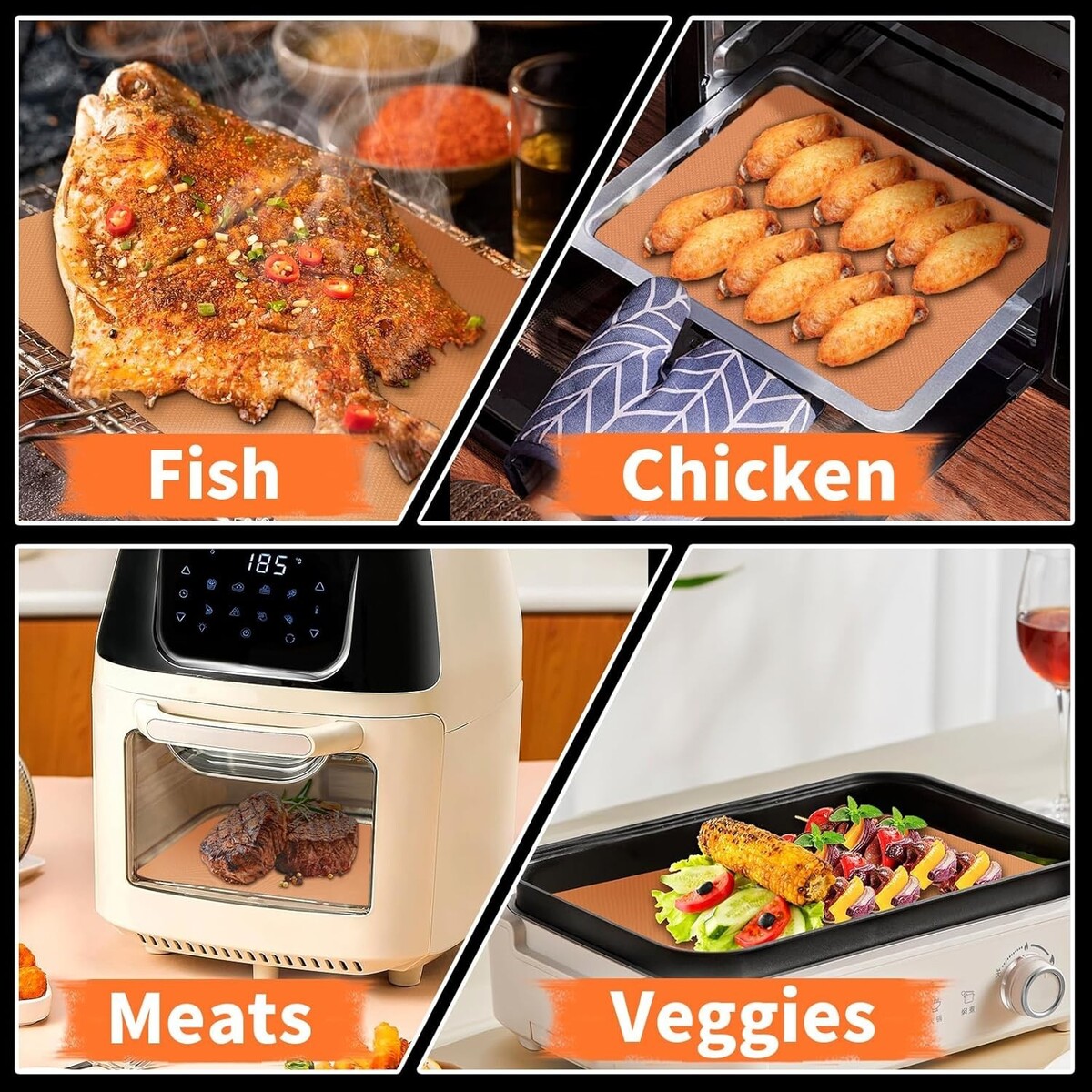 Multiple Uses: Both sides of the mats can be used over 100 times, offering a wide range of capabilities: grill meat, vegetables, fish, shrimp, pizza, pancakes, bacon, and eggs, making them perfect for campgrounds or park grills.
