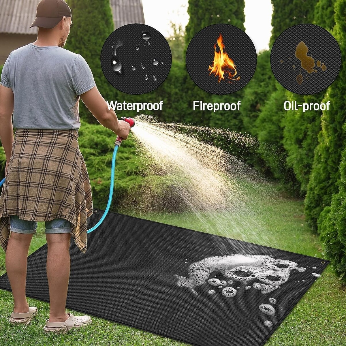 Protect Your Space: Designed to safeguard your deck, patio, paver, lawn, and cement from food spills, grease splashes, stains, and burns.