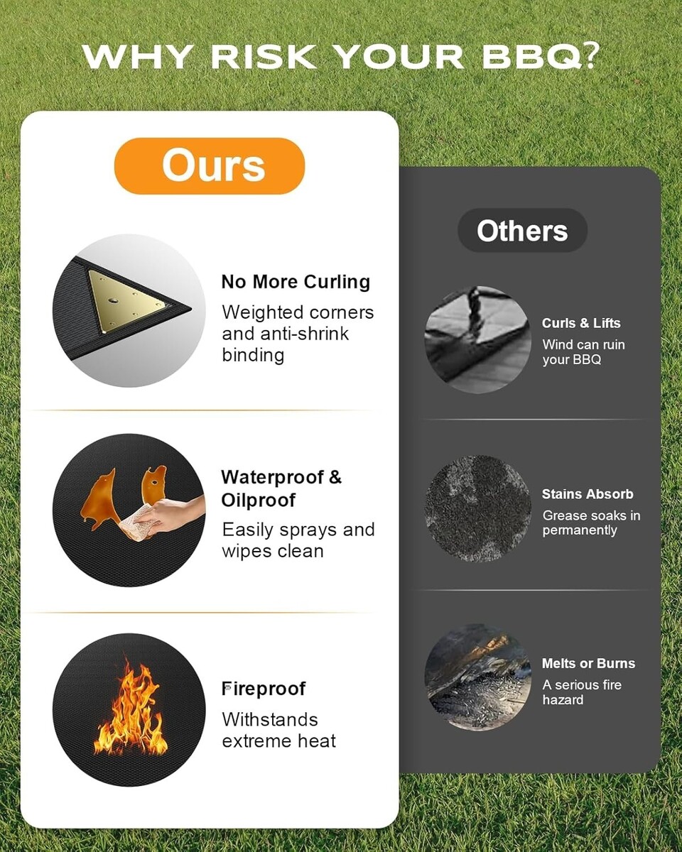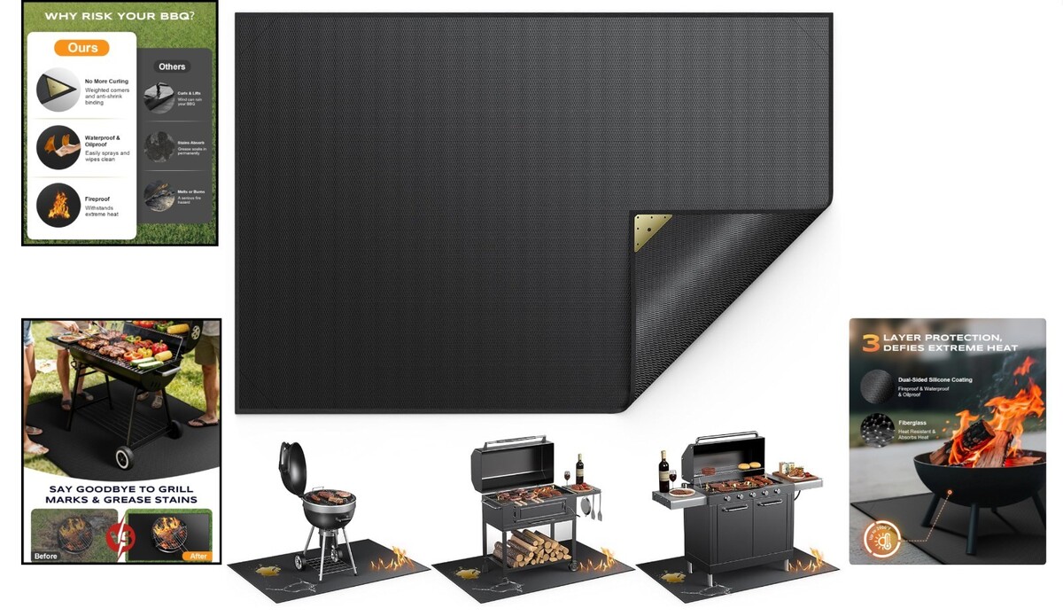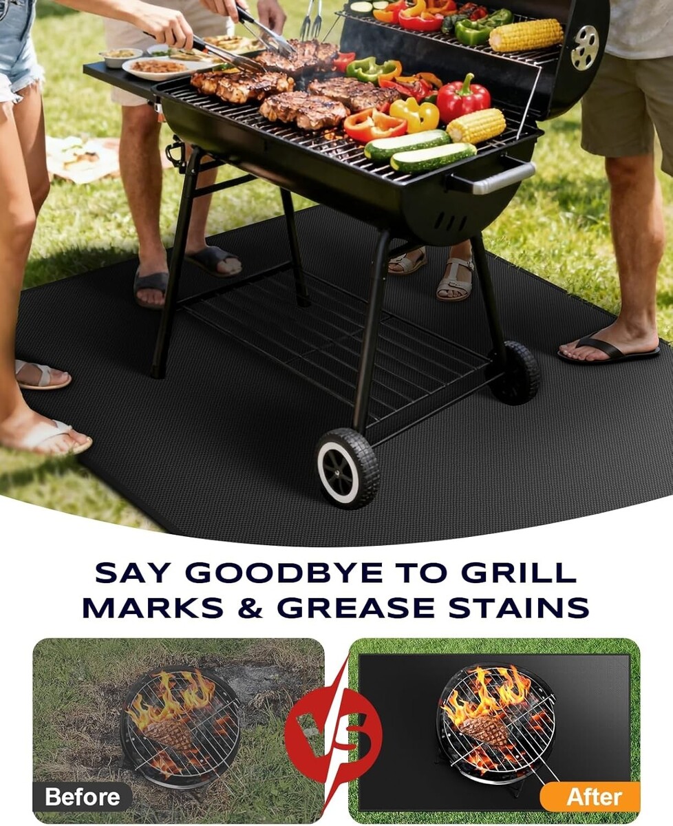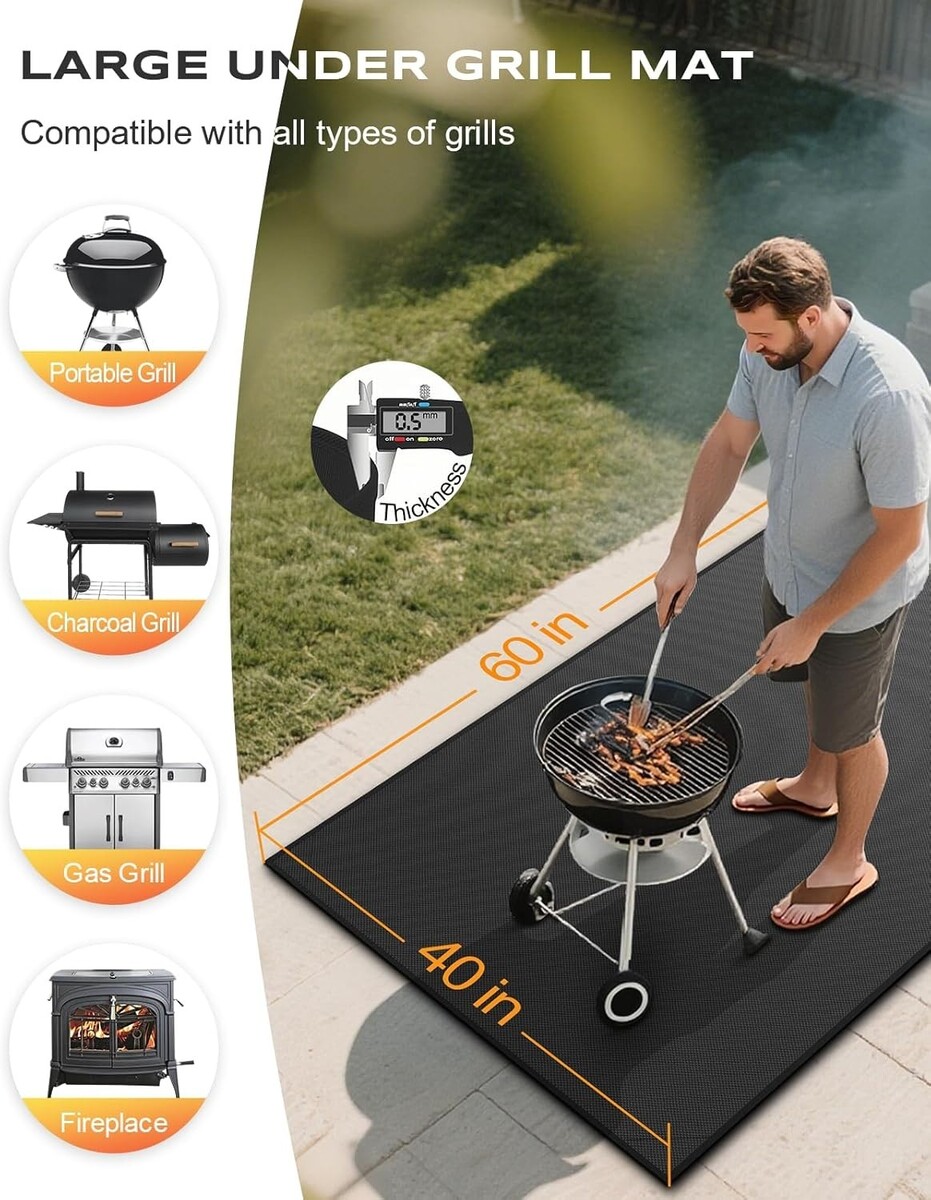 Large Size for Total Coverage: With a massive 60"x40" coverage, it creates a comprehensive protection zone under your grill to shield your patio, deck, or lawn from heat, sparks, and grease stains.