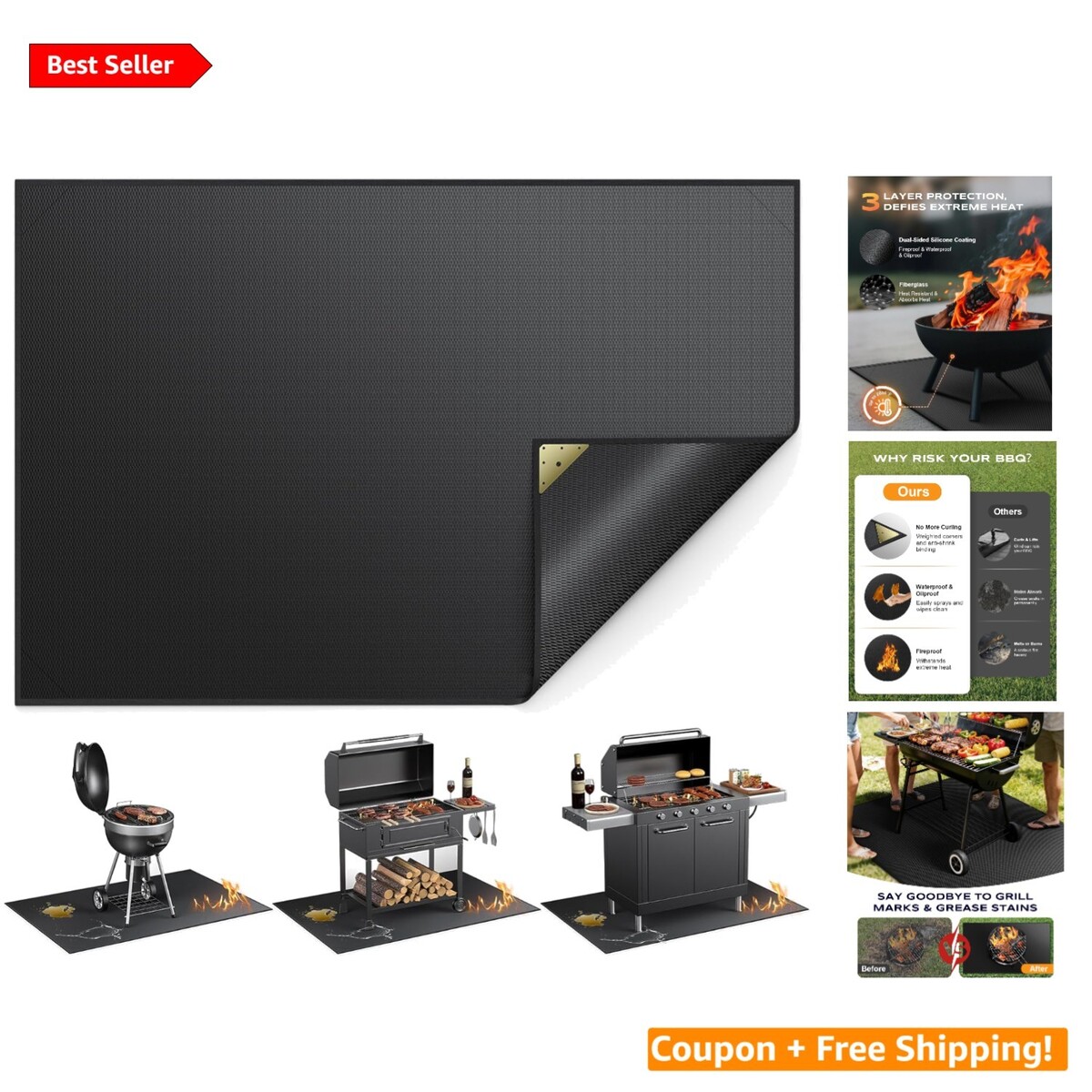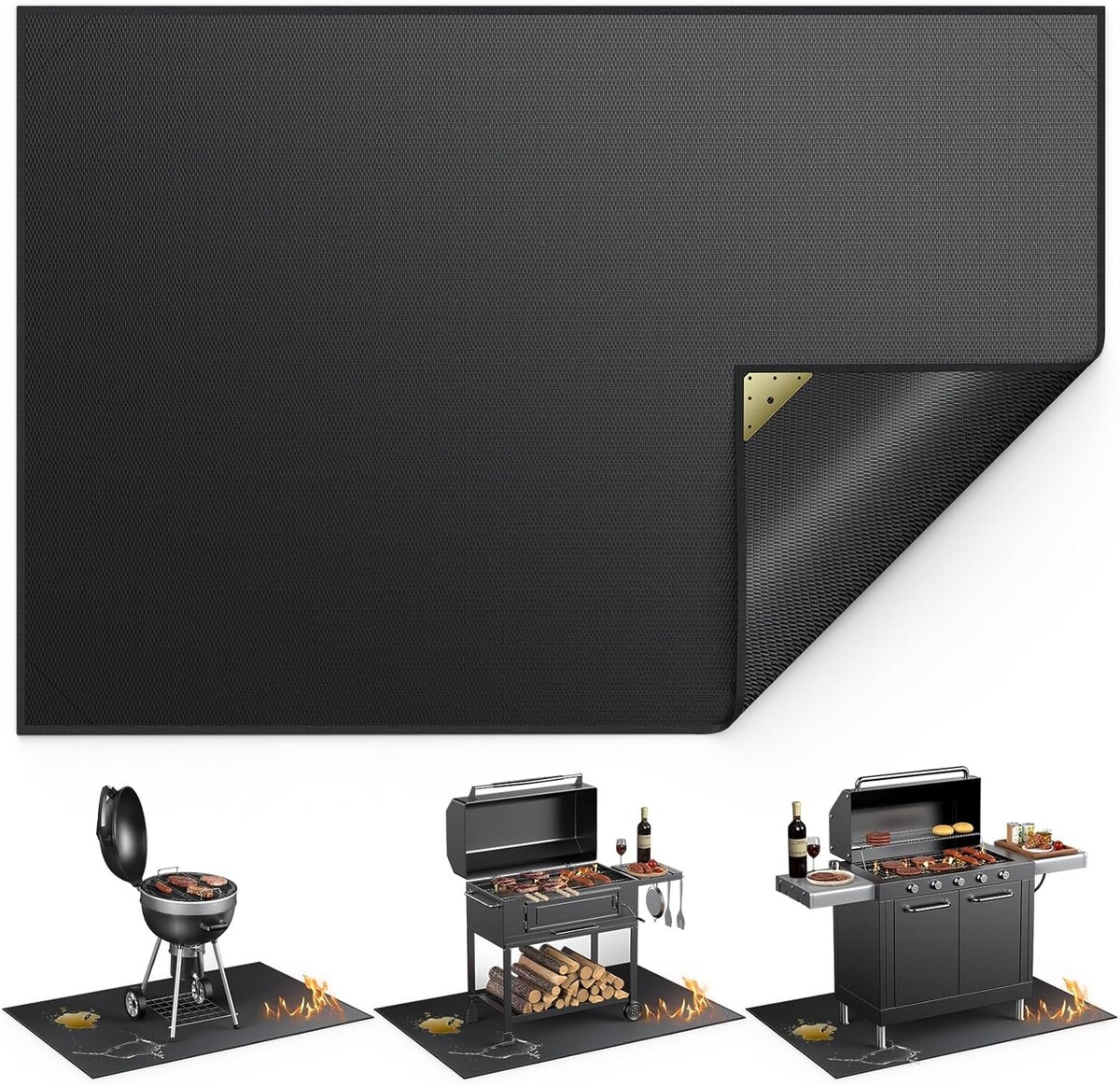 Double-Sided Fireproof 60x40 Inch Under Grill Mat - Waterproof & Easy to Clean