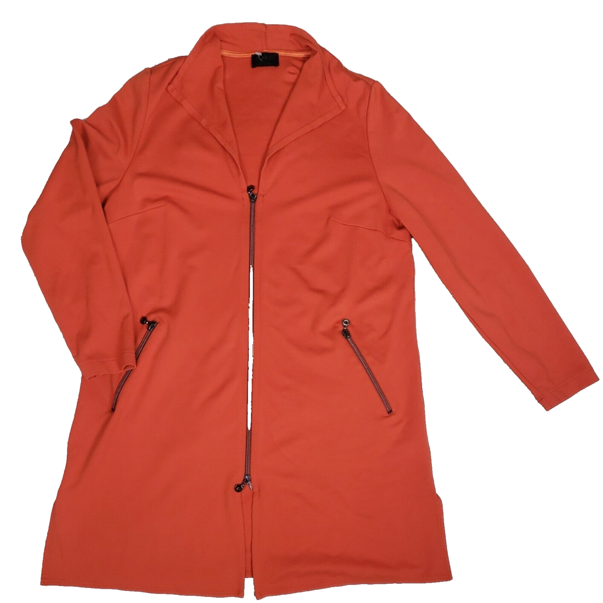 Q Neel Sweater Jacket Orange Zipper Unlined Shift Long Sleeve Duster