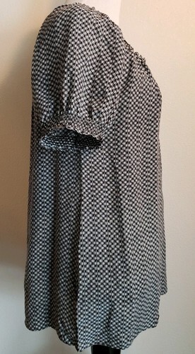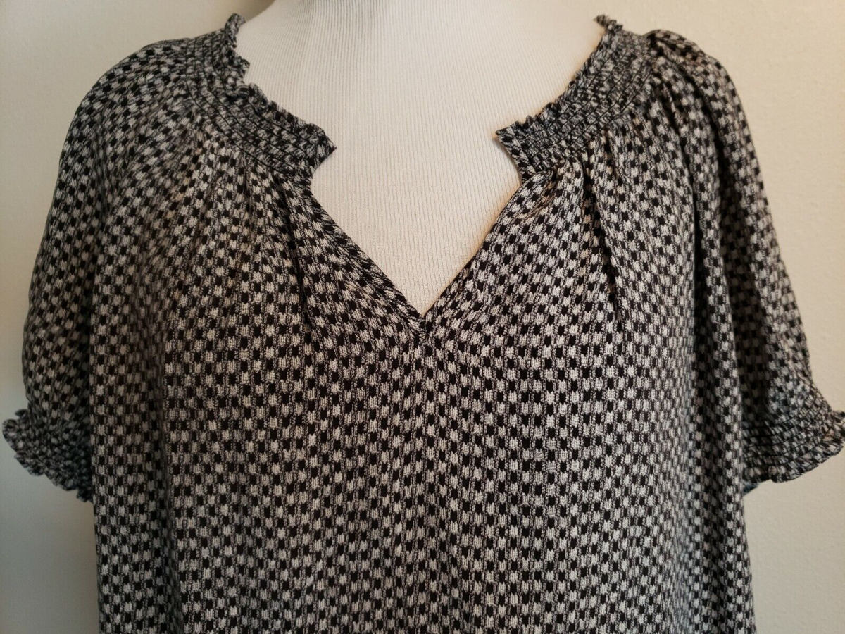 Joie Breezy Silk Blouse Womens S Black Check Smocked Short Sleeve Relax Fit Top