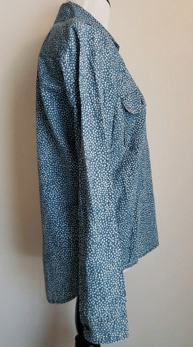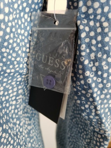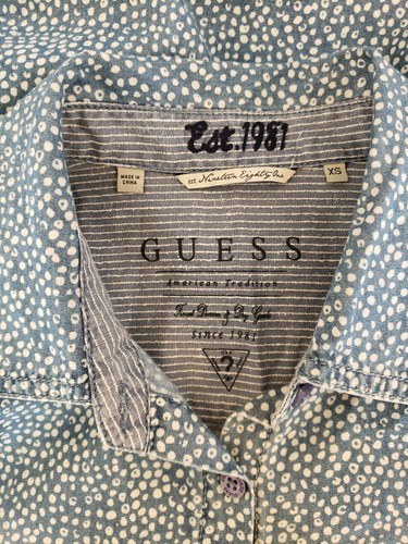 Guess Polka Dot Shirt 100% Cotton Womens XS Blue 1981 Denim Top Chambray Long