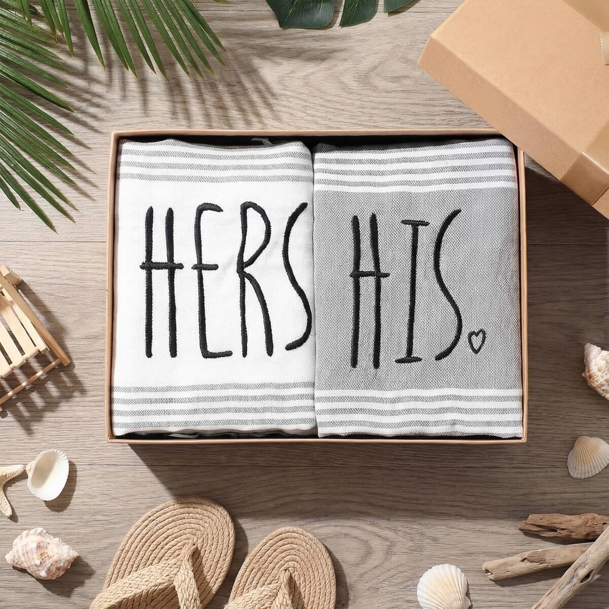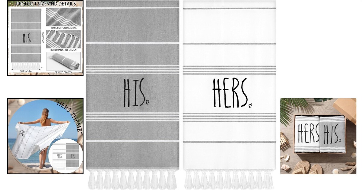 Charming His Hers Turkish Cotton Beach Towels - Perfect for Newlyweds, 2 PCs