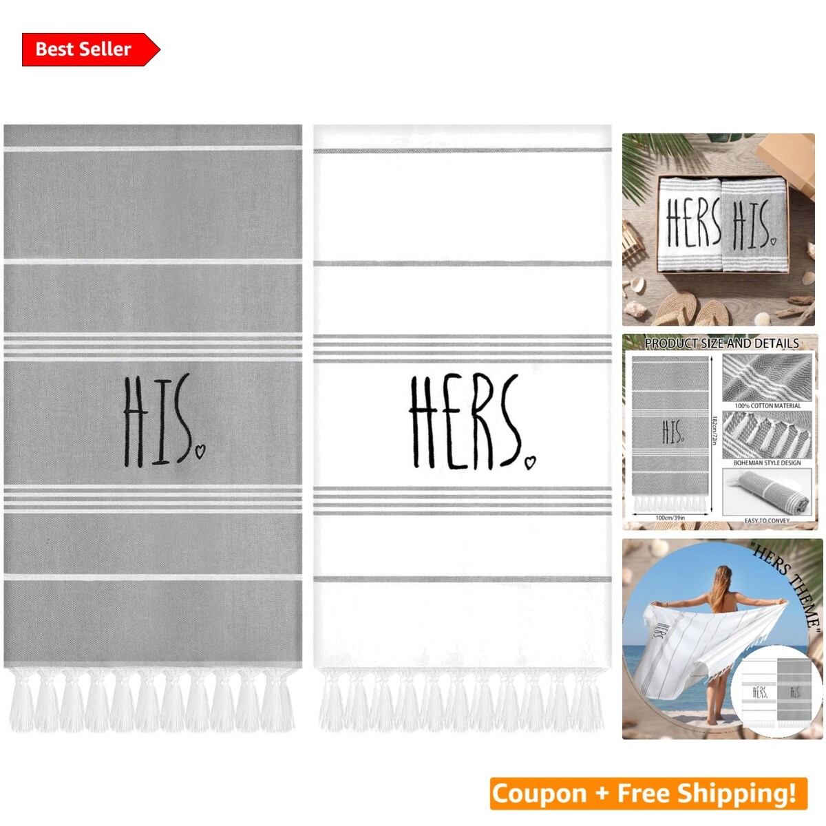 Indulge in luxury, embrace love, and make unforgettable memories with our Charming His Hers Turkish Cotton Beach Towels. Order your set today and embark on a stylish adventure with your loved one!