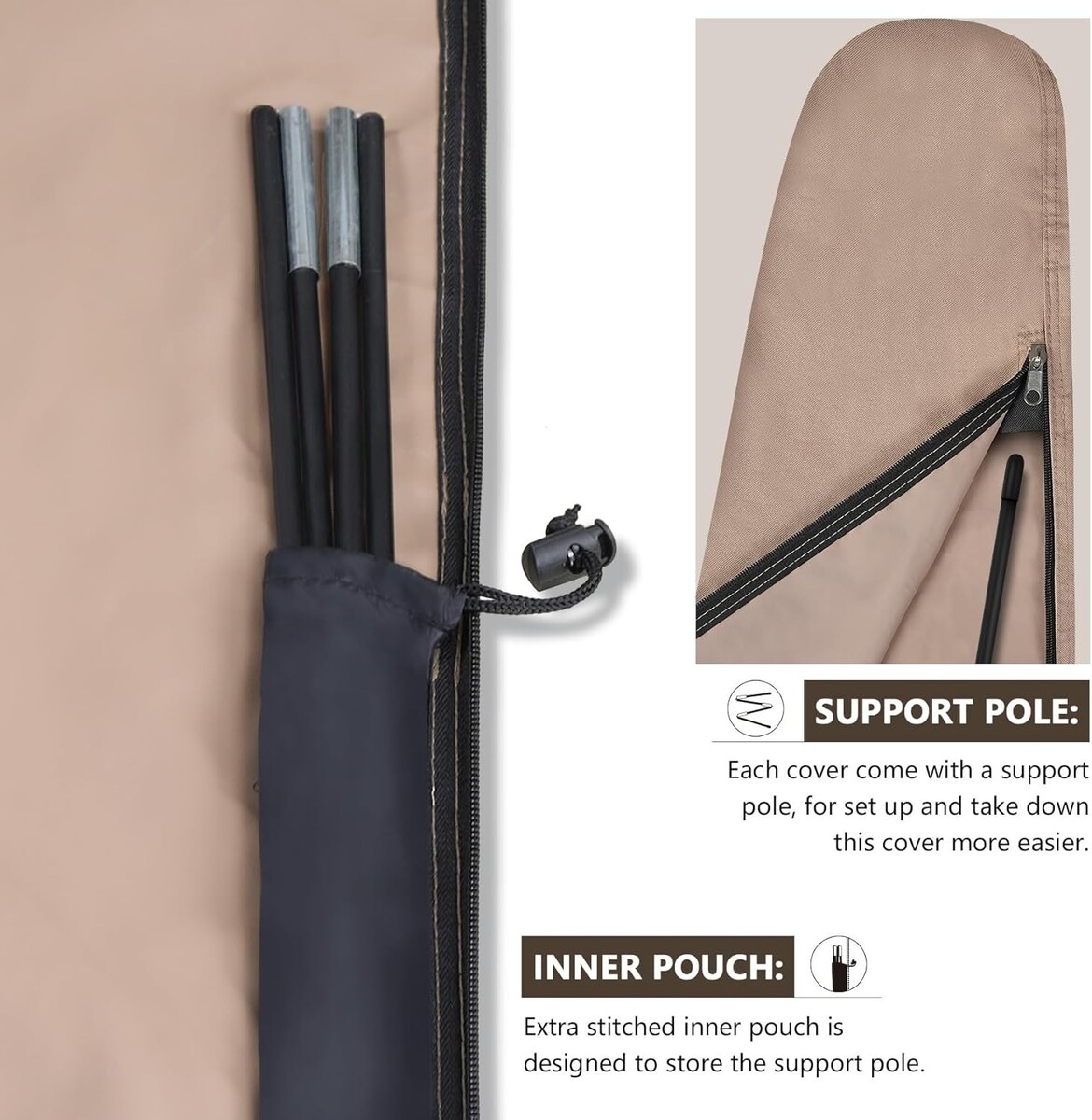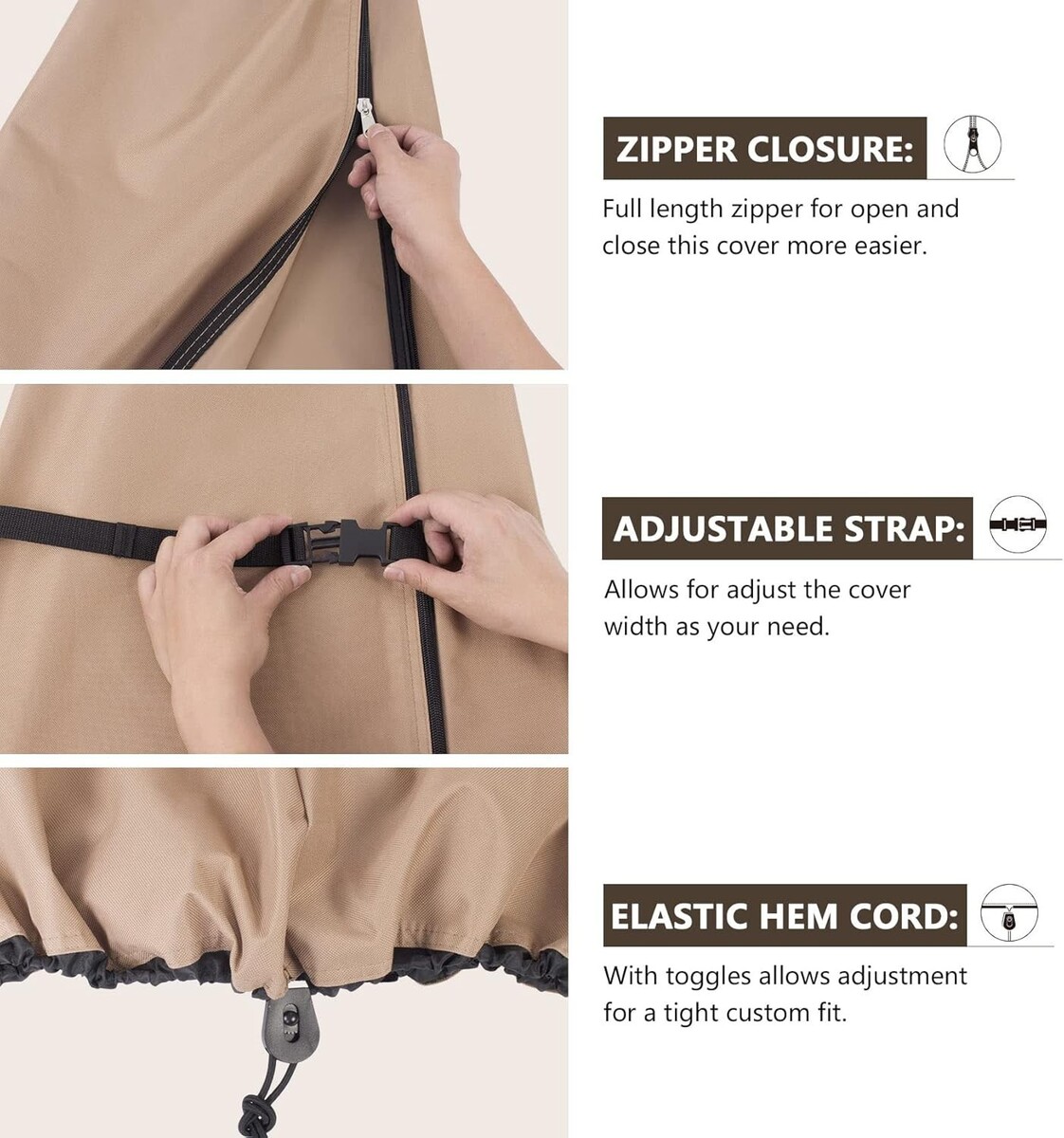 Includes a collapsible fiberglass pole for convenient lifting of the umbrella cover, paired with a zipper closure for effortless application and removal.