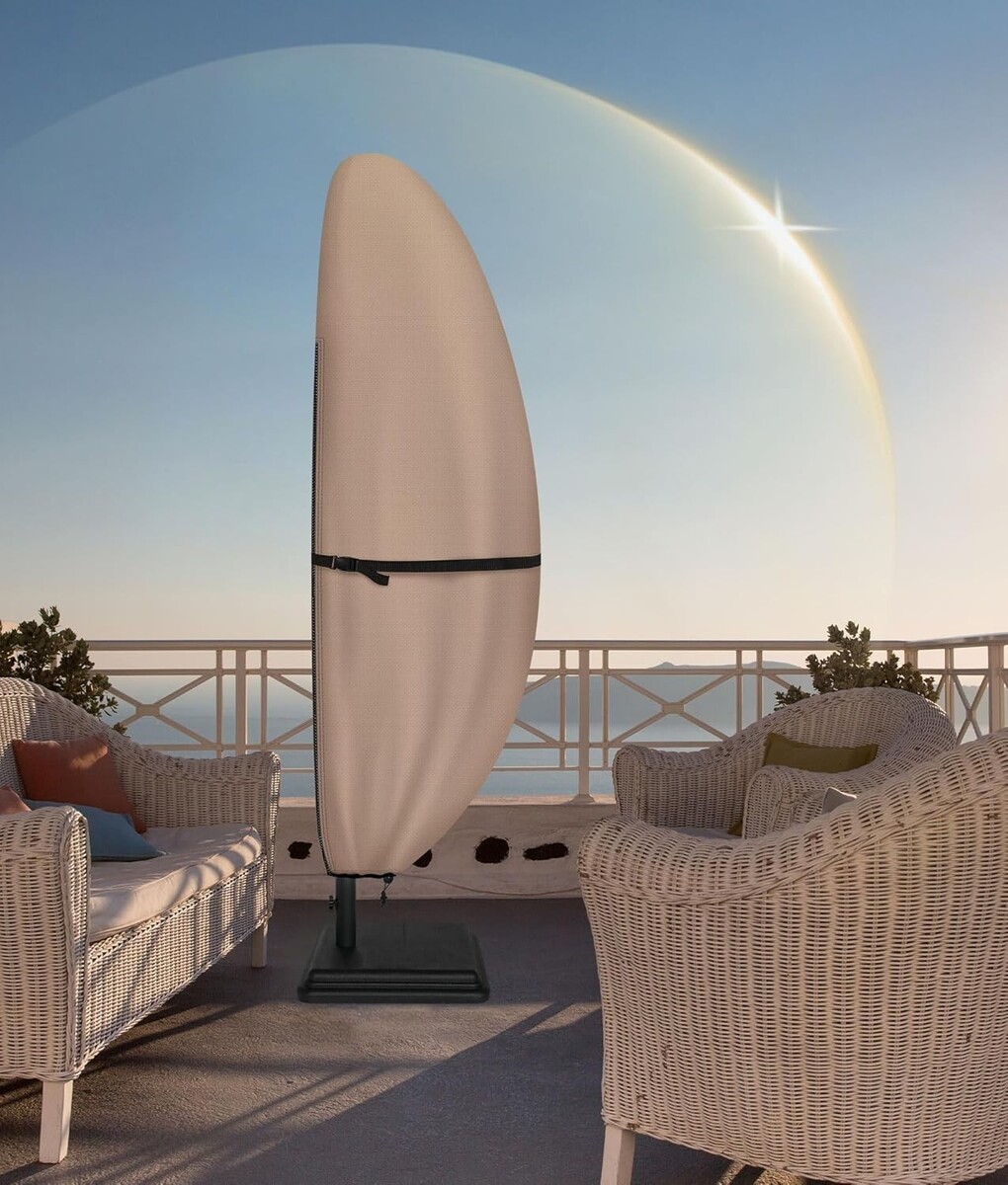Generously designed to fit offset banana frame umbrellas up to 11.5 feet in diameter (Round) or 7.5 feet in length (Square).
