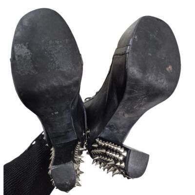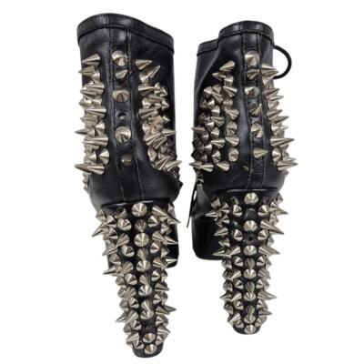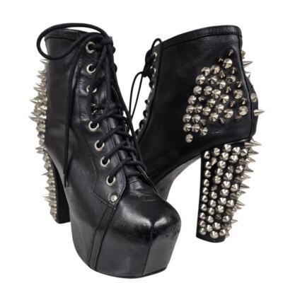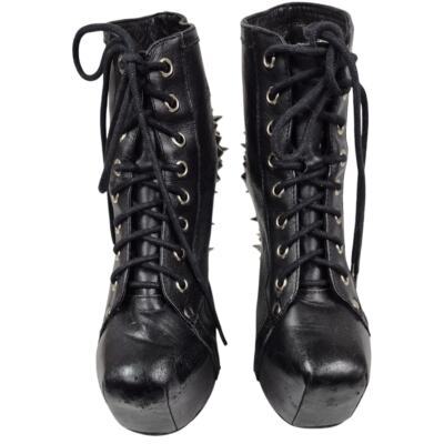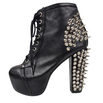 Jeffery Campbell SIlver Spike Studs Black Leather Platform Lace Up Boots Sz 6.5