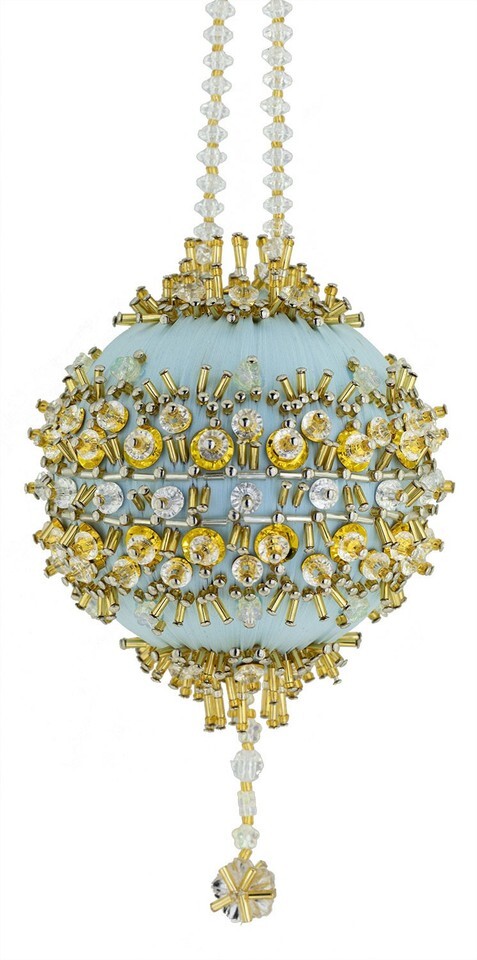 Cracker Box Inc Ornament Kit Blue Satin Lace ( Ice Blue ball with gold accents)