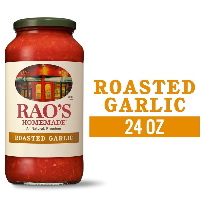 The perfect pasta sauce for any garlic lover, Rao?s Homemade Roasted Garlic Sauce is made from slow-roasted, caramelized garlic combined with a delicious slow-simmered blend of vine-ripened Italian plum and Italian cherry tomatoes for a naturally sweet taste. Rao?s Homemade Roasted Garlic pasta sauce is an all-natural, premium quality tomato sauce, made with only the finest ingredients like Italian tomatoes, roasted garlic, fresh basil, pure olive oil, salt and carrots. With our Homemade Roasted Garlic pasta sauce, you can enjoy a plate of your favorite pasta while staying on diet. Rao's Homemade Roasted Garlic Sauce is the perfect low carb, no sugar added pasta sauce for Keto and Whole 30 diets. Our sauce is also free of cholesterol and artificial colors making Rao?s Homemade Roasted Garlic pasta sauce the natural choice when cooking for your family. Simply use as a pasta sauce or try out some of our delicious recipes like Italian Meatloaf and Rao's Garlic Chicken when you order your next jar of Rao?s Homemade Roasted Garlic Sauce. Rao's has been creating authentic Italian pasta sauces since 1896 and has mastered this generations-old recipe to perfection. Don't miss out on a chance to experience this aromatic roasted garlic pasta sauce for yourself.